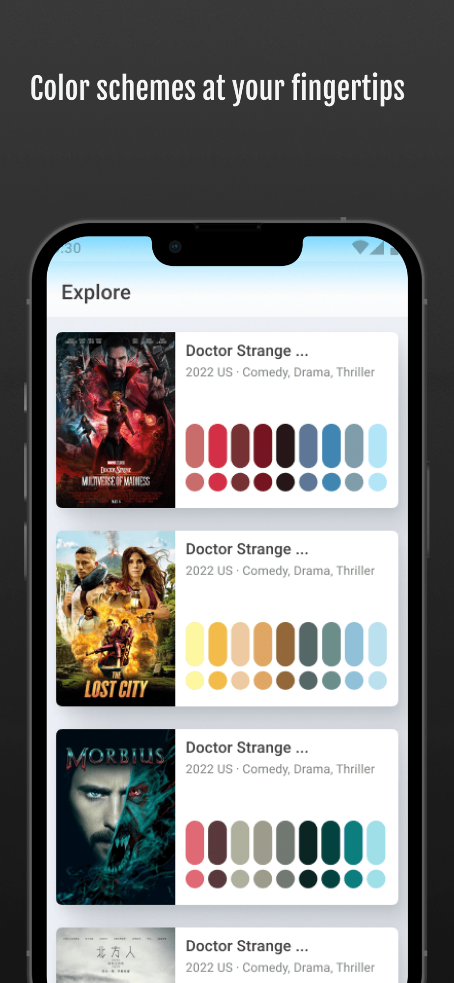Movie posters will be designed with a very colorful style and artistic beauty. The color matching of movie posters is also an excellent design work with the strongest color style. We refine movie posters with AI technology and obtain their excellent color schemes for designers and enthusiasts to learn and use these excellent color schemes