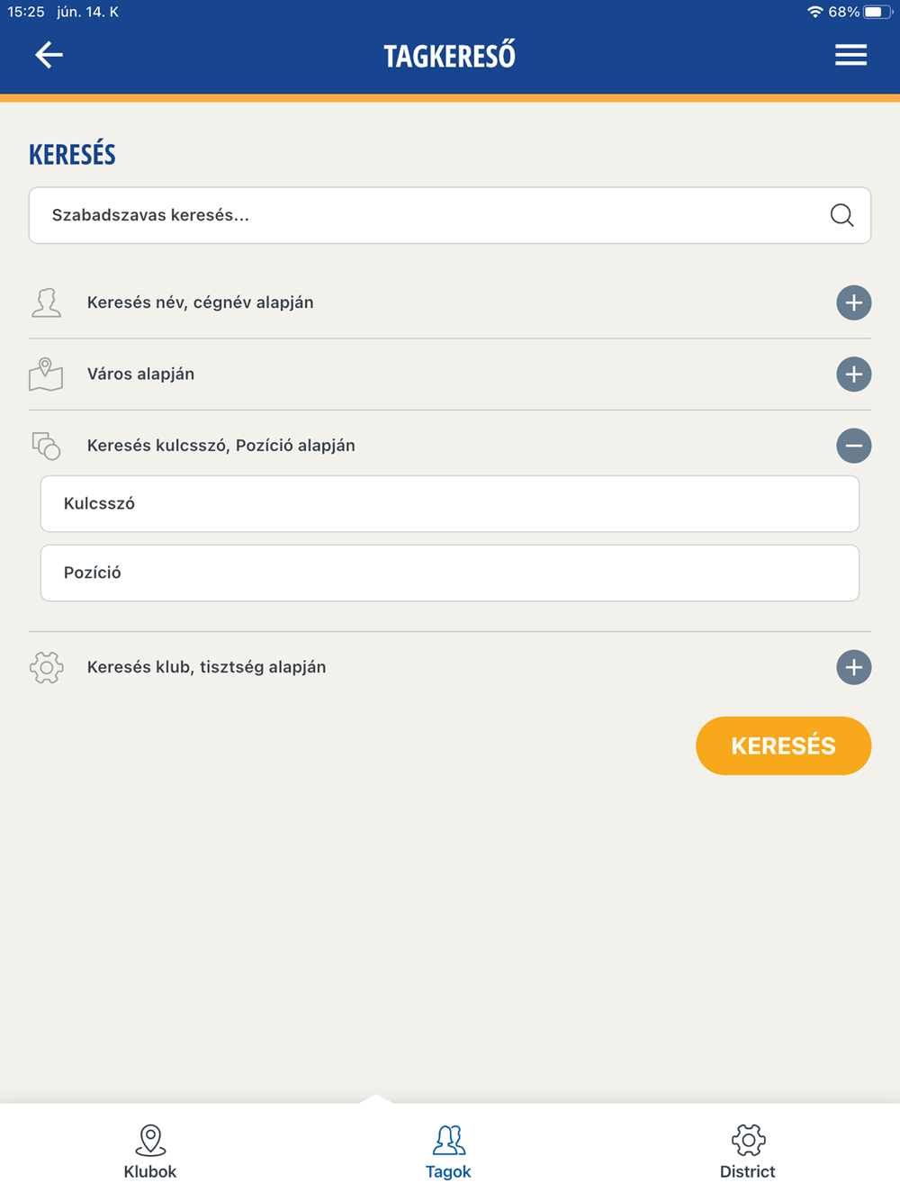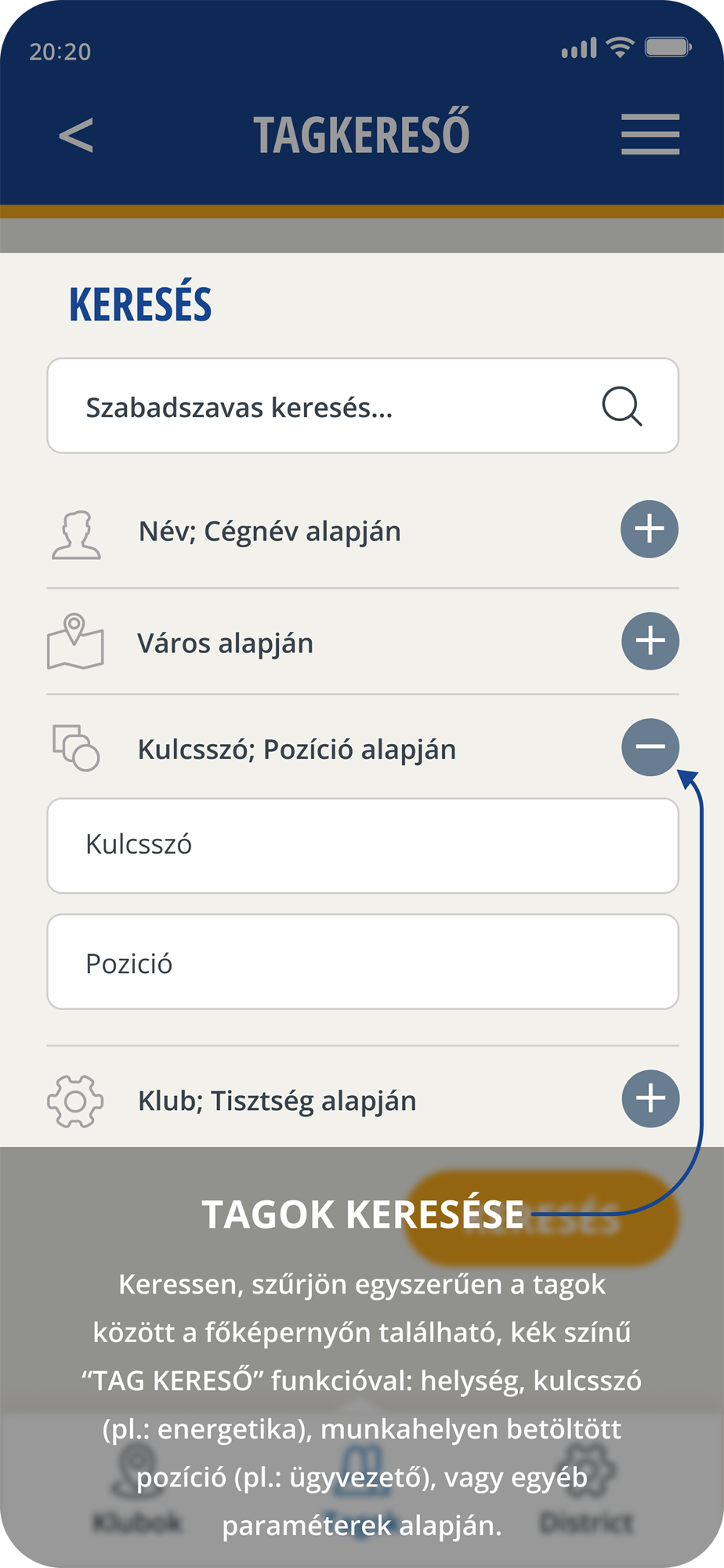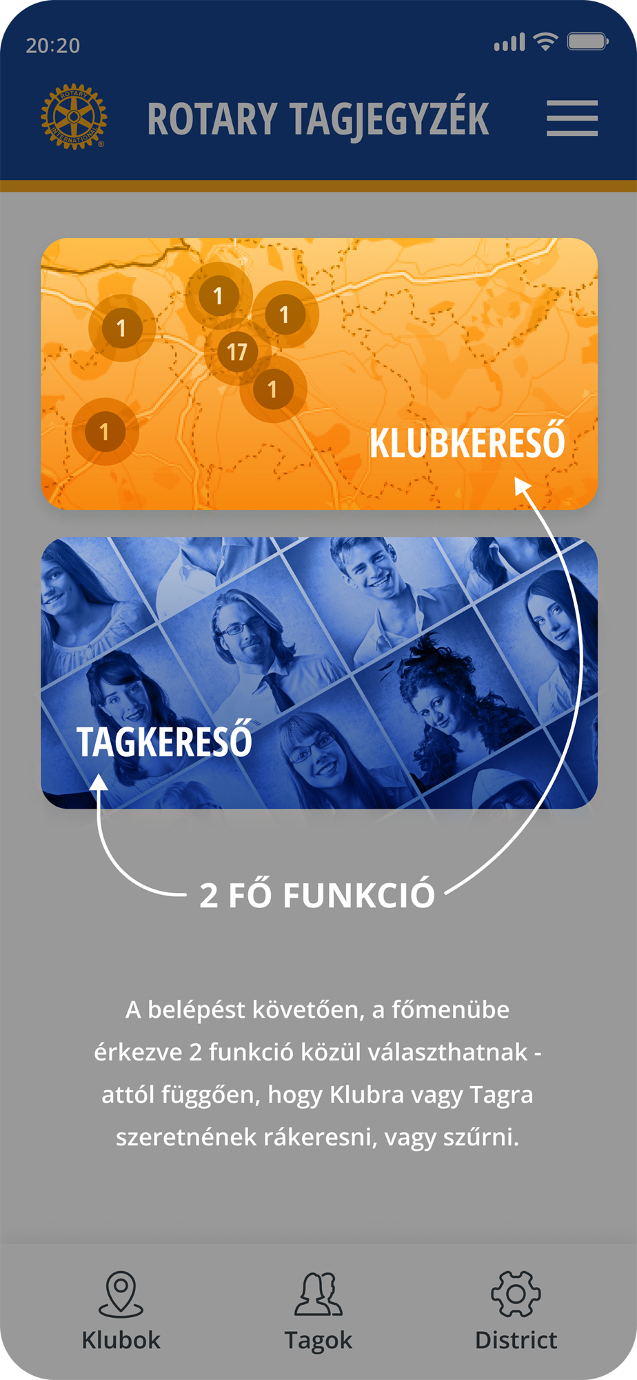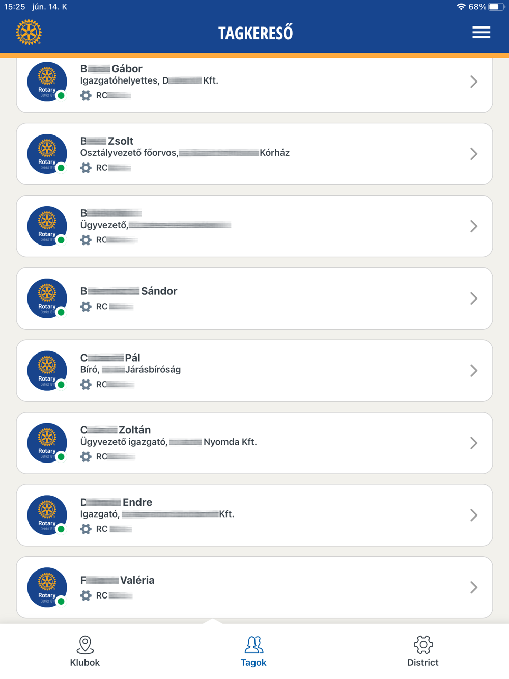 Ám ennél sokkal többre is képes az alkalmazás! A kereső funkción keresztül név, cégnév, cím, klubok, tisztségek, kategóriák alapján tudunk szűrni, de szabadszavas kereső is rendelkezésünkre áll. Az alkalmazás a klubokat átlátható térképen jeleníti meg, ahol minden fontos adatot is megtudhatunk az adott klubról.