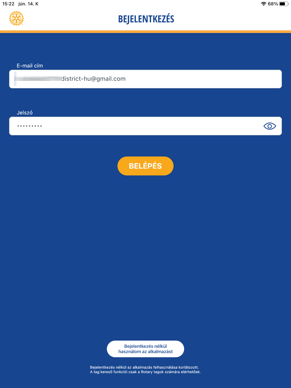 Az alkalmazás - korlátozott funkciókkal (például: a klubok információinak megtekintése céljából) regisztráció nélkül is elérhető.