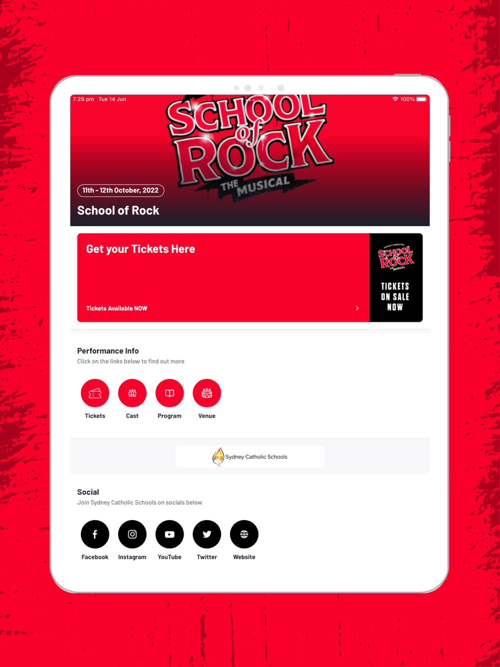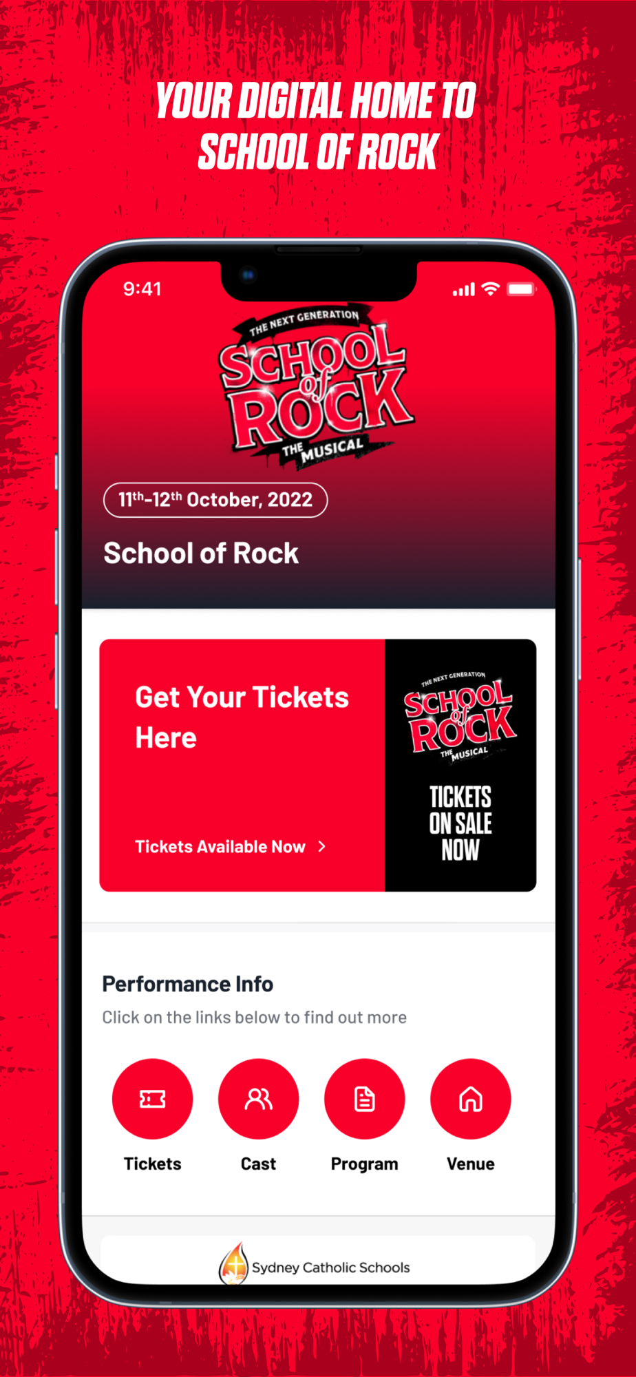 The School of Rock app is the official mobile home for the Sydney Catholic Schools production of School of Rock.