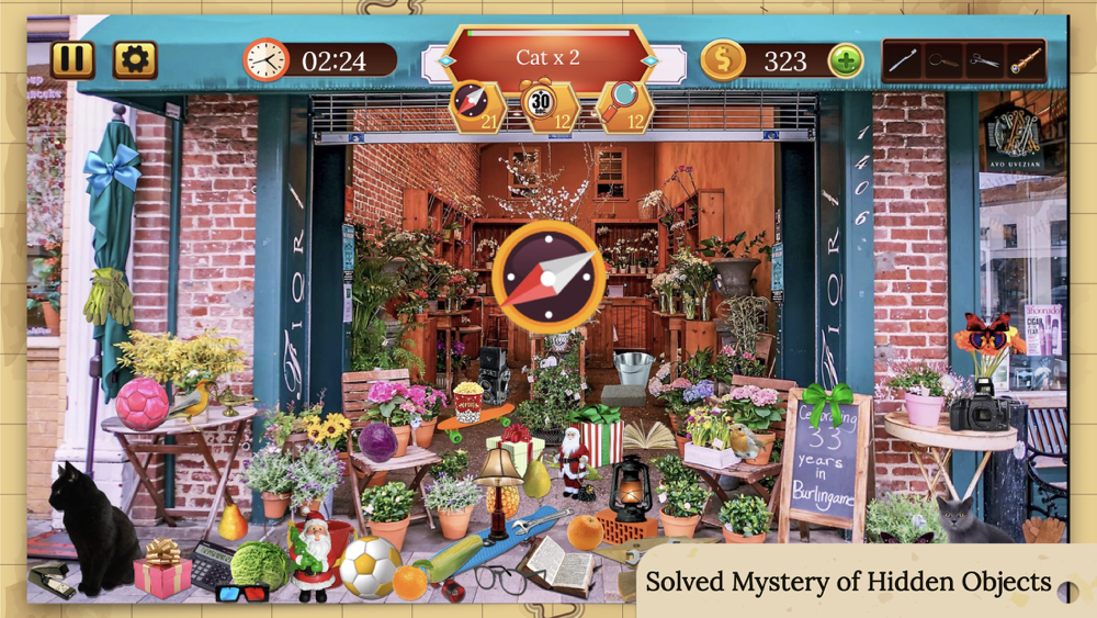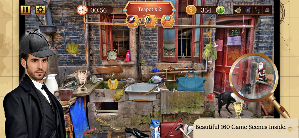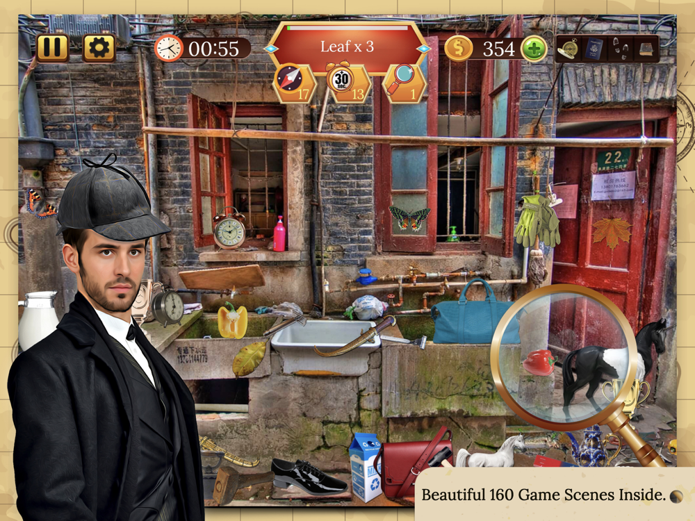 In each mystery case, solve 4 scenes of hidden objects game to collect evidence items,