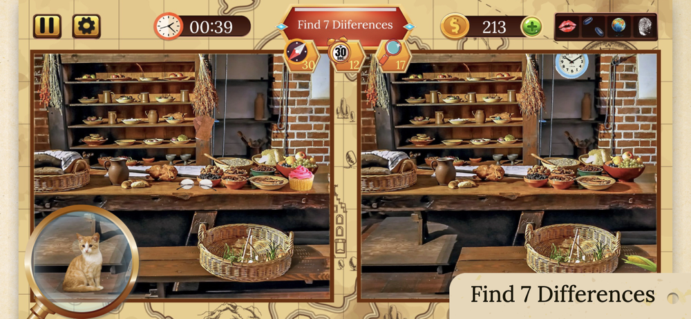 then solve 4 scenes of find 7 differences game for unlocking to next levels.