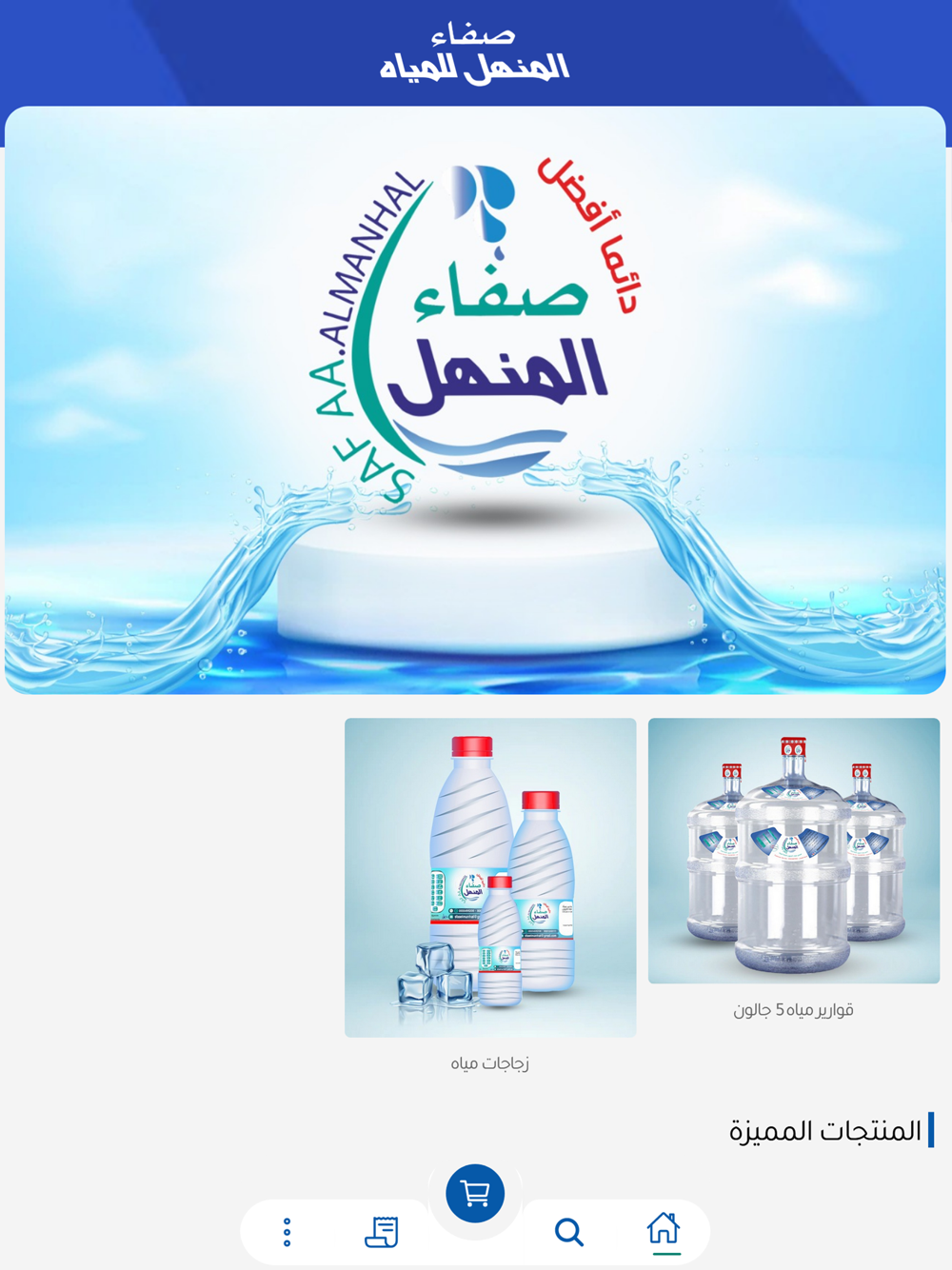صفاء المنهل للمياه تقدم لعملائنا خدمة الطلب اون لاين من خلال تطبيق سريع وسهل .