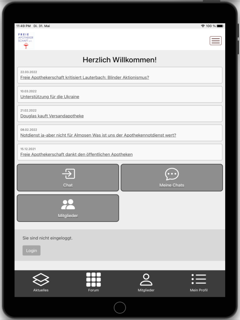 Die Vereins-App der Freien Apothekerschaft e.V. mit Informationen für Interessierte und Mitglieder. Im internen Bereich können sich die Vereins-Mitglieder austauschen und kommunizieren.