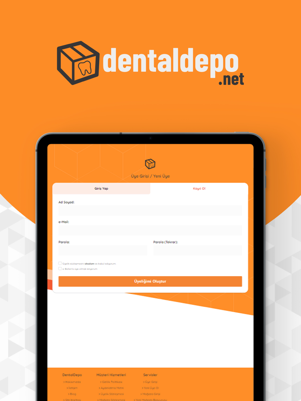 DentalDepo tüm sağlık çalışanlarına ve öğrencilerine ihtiyaç duydukları çeşitli ürünleri tek bir yerde bulma hizmeti sunan bir e-pazaryeri modelidir. Amacımız; mevzuat hükümleri dahilinde; tıbbi cihazlardan sarf malzemelere, medikal üniformalardan sektörel yazılımlara, kaynak kitaplardan 2.el cihazlara kadar sağlık meslek mensuplarının ve sağlık bölümü öğrencilerinin medikal ürün alışverişinde zamandan tasarruf etmelerine katkı sağlamaktır.