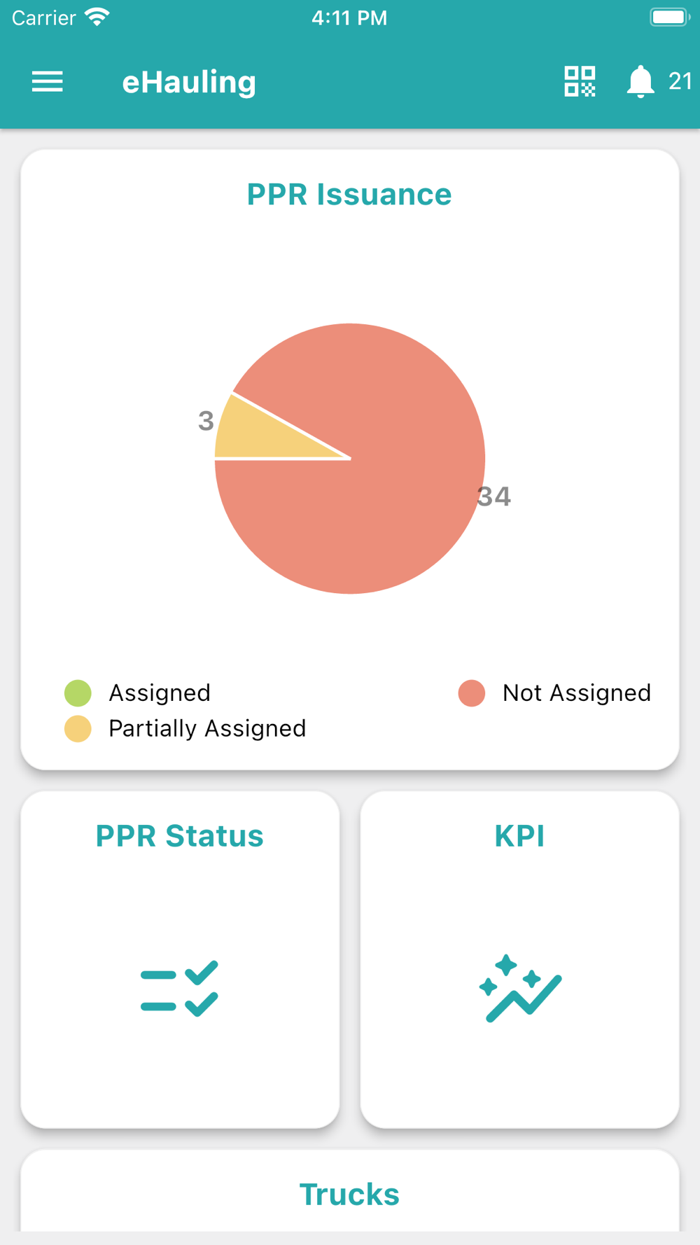 The eHauling system streamlines the truck delivery of hydrocarbon refined products across the Saudi Aramco distribution operations network, including more than 200 trucking routes for a network of more than 30 locations. Bulk plants, air fueling operations, and gas plants are all part of the distribution network. Using the GPS position monitoring of the mobile device, the mobile application will improve and optimize the tracking and processing of stock transfer movements by trucks, through hauling service providers.