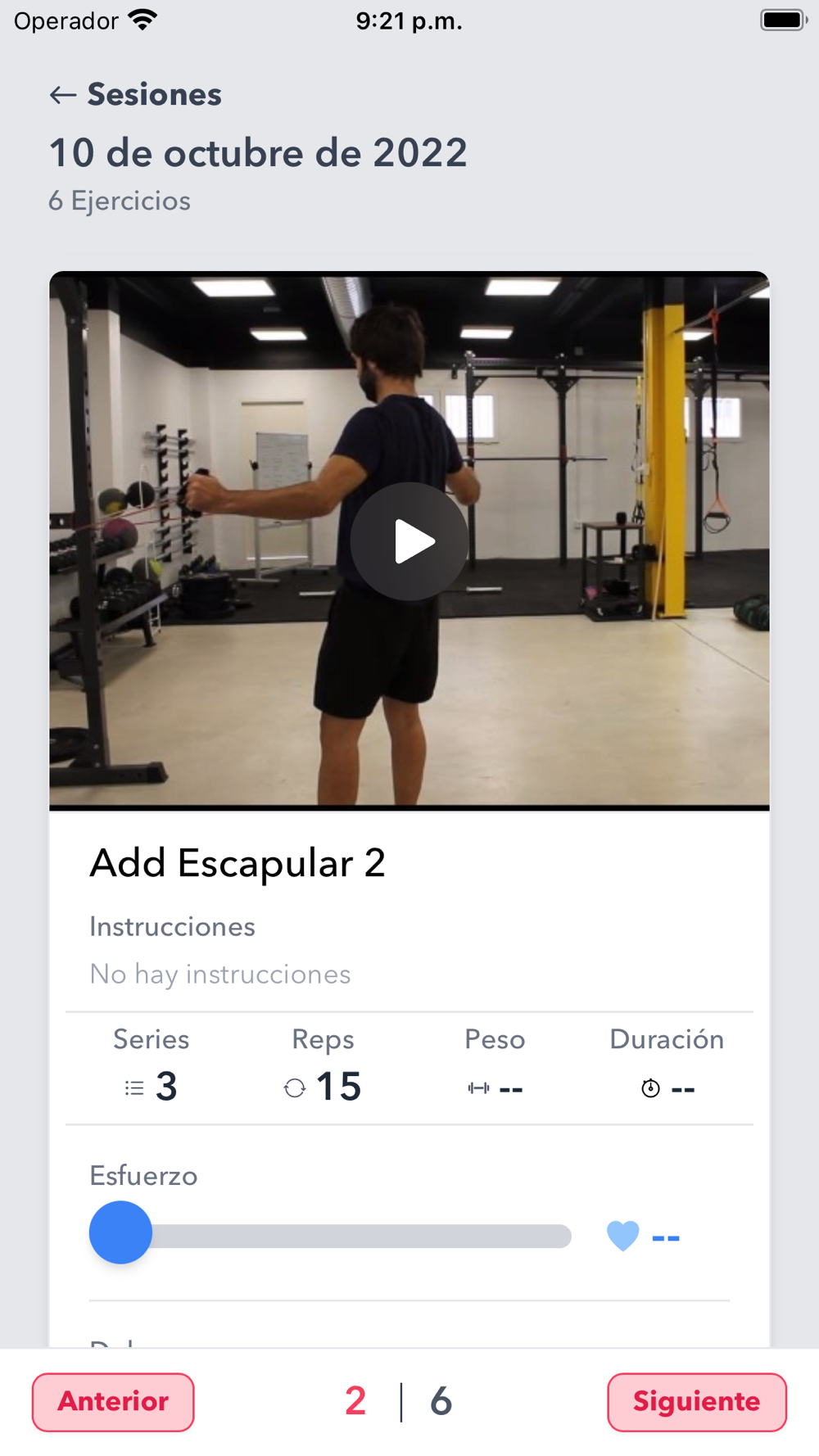 Aportar el feedback de esfuerzo percibido (escala de borg) y de dolor (escala EVA) de cada ejercicio.
