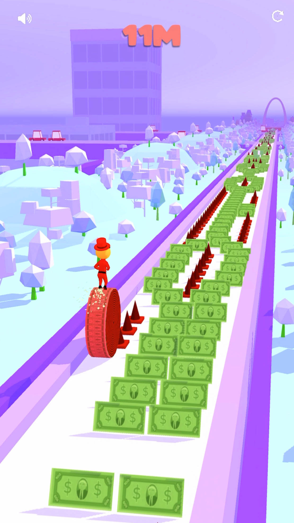 Grow rich by pumping up your money roll as you slide along the path picking up cash and avoiding the obstacles. The bigger the roll, the higher you go and the further you jump in the endgame multiplying your money... have fun becoming a millionaire!
