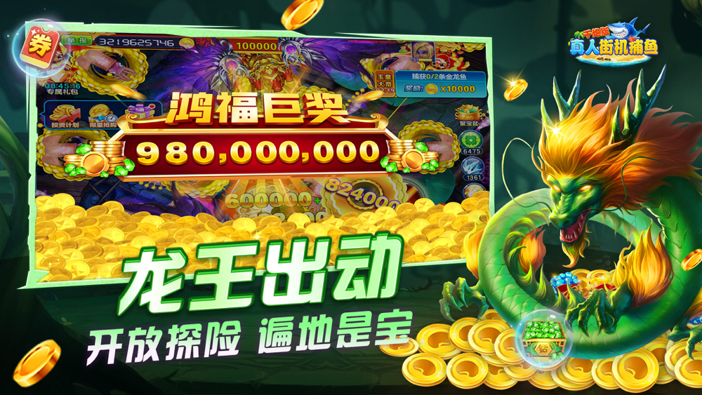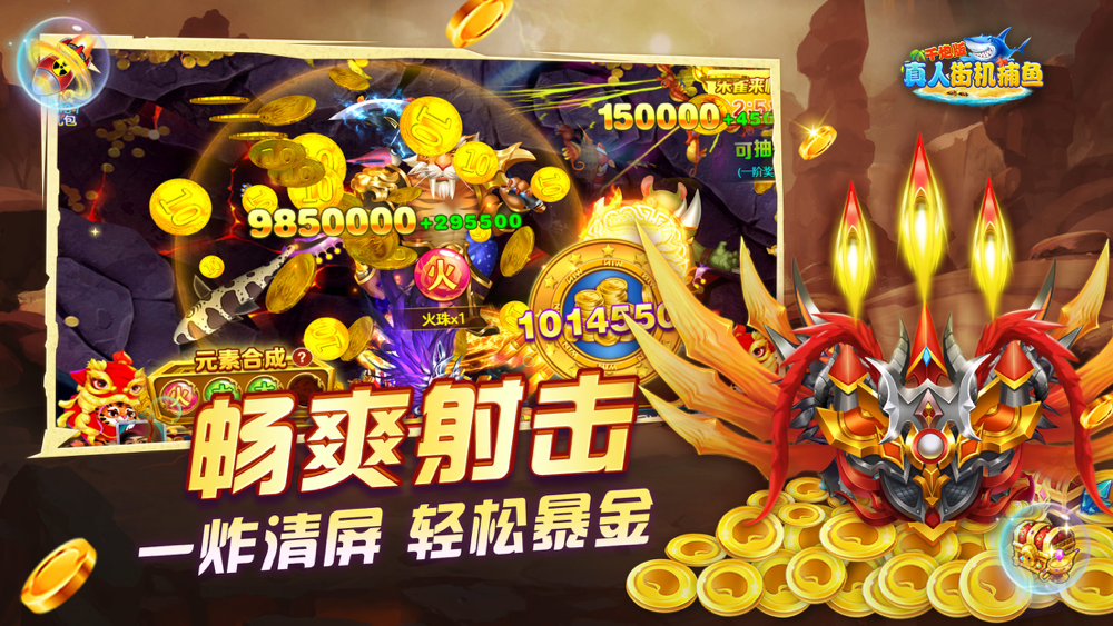 特殊鱼种上古神兽全新来袭,场景互动和事件玩法给你带来完美的沉浸式捕鱼体验,三头六臂哪吒,桀骜不驯龙宫太子,更有神秘的天庭王者玉皇大帝等您来战,快来一探究竟!