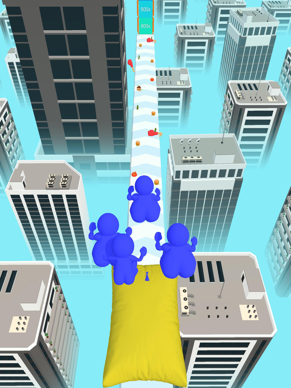 Make your character fat, take it with you by jumping with other characters and get the highest score by lifting the weight at the end. Watch out for obstacles while eating delicious burgers. Every time you hit it, you'll start to weaken.