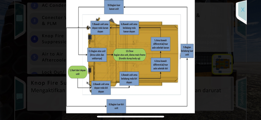 Virtual reality is a technology that allows users or users to interact with the environment in a virtual world that is simulated by a computer, so that users feel they are in that environment. Virtual reality technology has been widely applied in several industrial sectors such as medicine, aviation, education, architects, the military, and mining. The virtual reality developed in this application is used to assist the training and development process in the company, especially users to learn about the work of supervising coal mining operations, example: morning briefing, supervising activities at the front and disposal. This mobile version of virtual reality allows users to study heavy equipment units by viewing 3D images according to the real unit without using additional devices such as VR headsets and other supporting devices