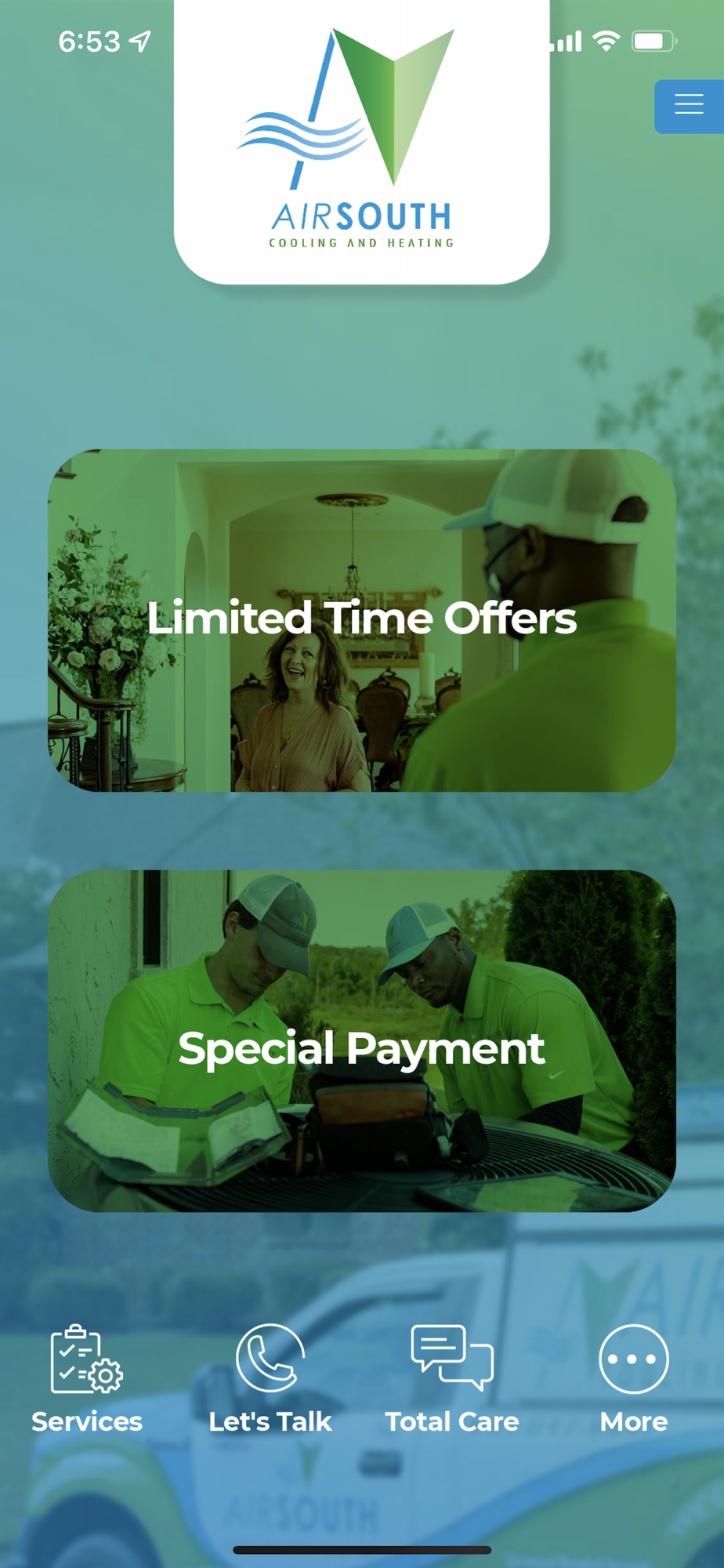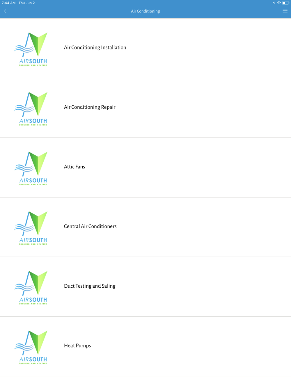We invite you to download our app to learn more about AirSouth Cooling and Heating, and all of our services! Schedule service, request consultation, and receive specials for only our app users through push notifications! Follow us on social media and share this app with your family and friends. We look forward to connecting with you!