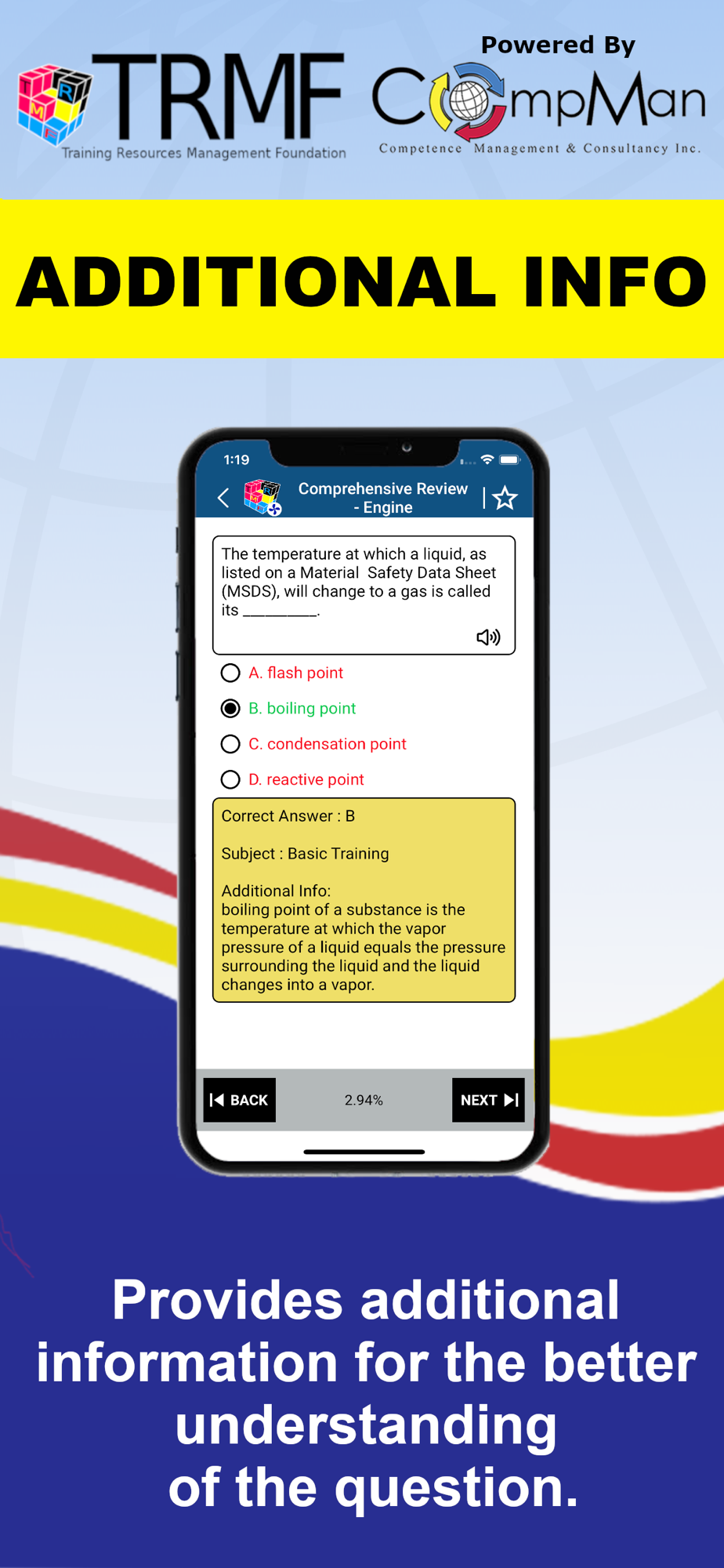 Training Resources Management Foundation (TRMF) together with Competence Management and Consultancy Inc. (COMPMAN) recognizes the value of Review for the Maritime schools in building up knowledge and understanding not only to qualify but gain the proficiency and confidence required in carrying out related tasks on board and be able to compete and excel globally in the maritime industry. To achieve this goal, TRMF together with COMPMAN took advantage of technology particularly the use of tablets and the web/ internet.