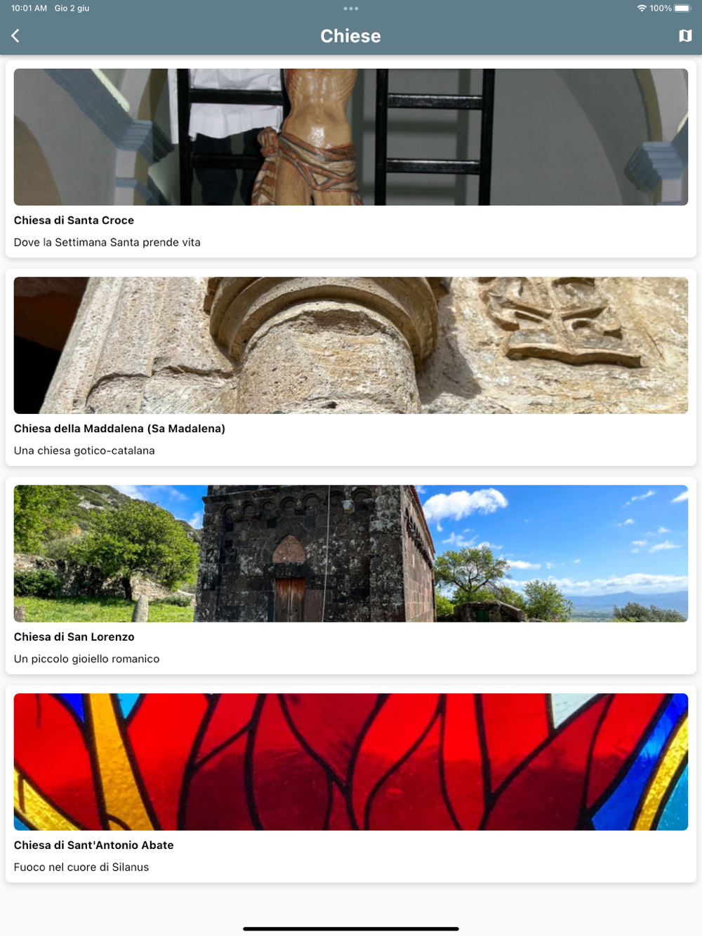 Troverai descrizioni dettagliate dei punti di interesse, foto a 360°, video e molte curiosità rispondendo ai quiz o ascoltando i canti tipici sardi.