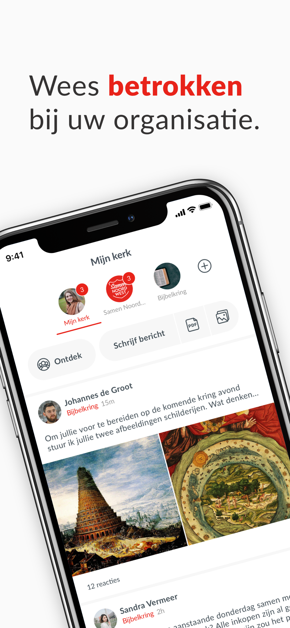 Thanks to our unique group structure, we can communicate better. With the entire community, but also among ourselves. You can add groups yourself and invite people to join. A smart timeline ensures that you see personal and relevant information.
