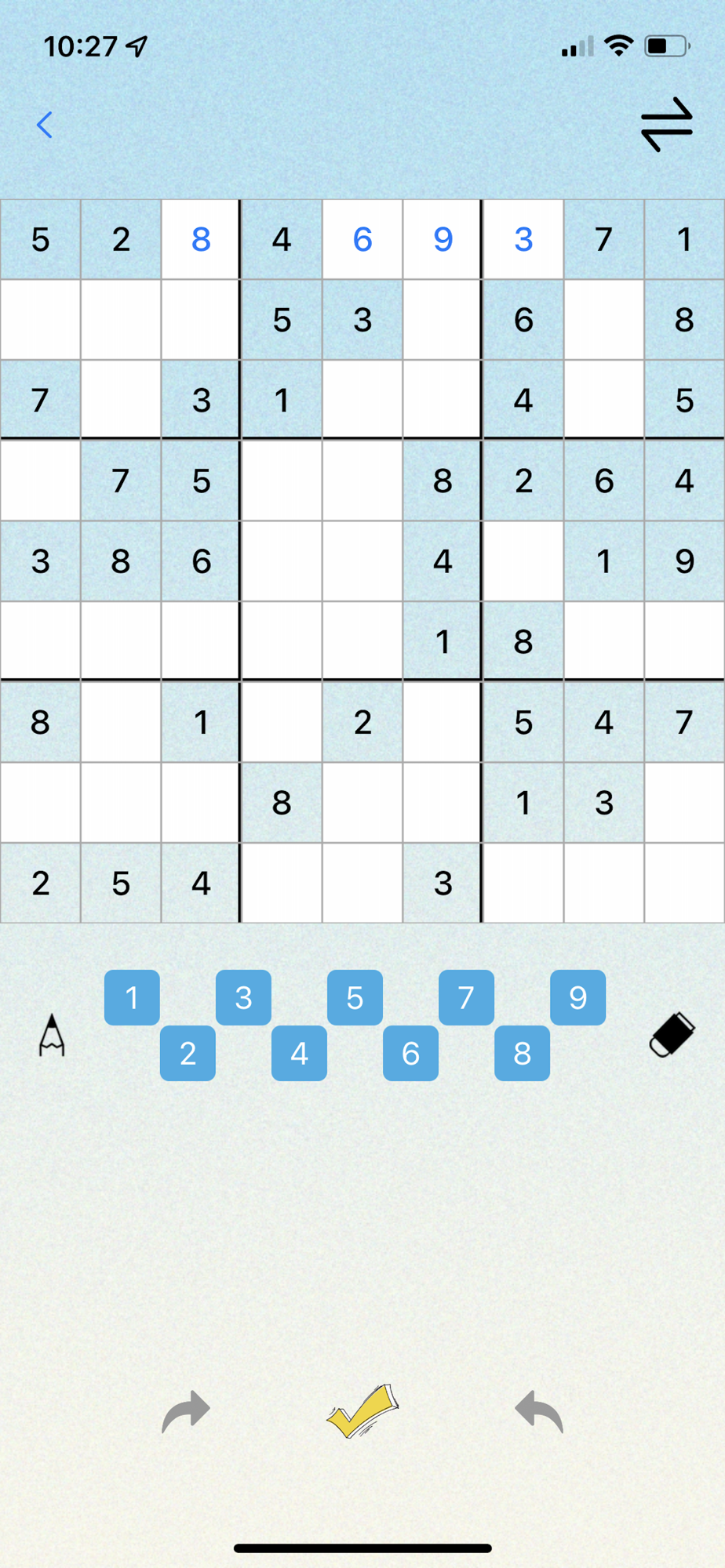 数独的目标是用数字填充9x9(4x4, 6x6)的宫格,让每一行,每一列和每个3x3小九宫部分都包含1到9之间的所有数字。数独作为逻辑谜题,同时也是可以进行智力锻炼。如果你每天都玩数独,将有助于提高注意力和整体智力,以及逻辑推导能力。快来加入我们,一起数独吧~~~