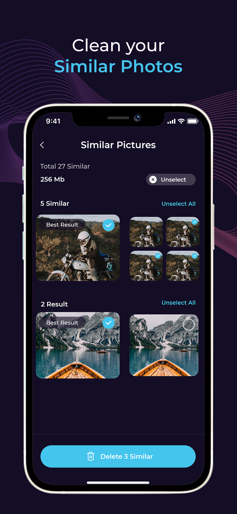 Cleany allows you to organize your phone storage in several minutes. Delete duplicate & similar photos and free up your space. Smart & Fast Cleaning!