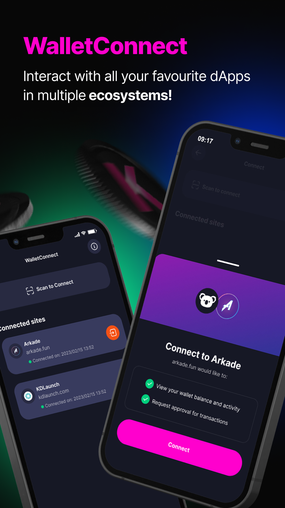 Take your dApp experience to the big screen! Use WalletConnect to explore a range of dApps across a number of different blockchains on a desktop web browser, all while keeping your private keys safe.