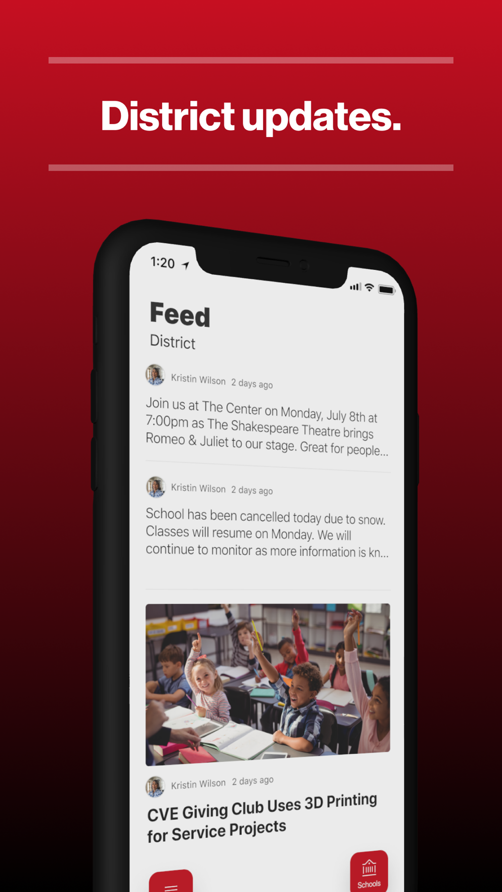 In the Live Feed is where you’ll find updates from the administration about what’s going on in the district right now. Whether that’s celebrating a student’s success, or reminding you about an upcoming deadline.