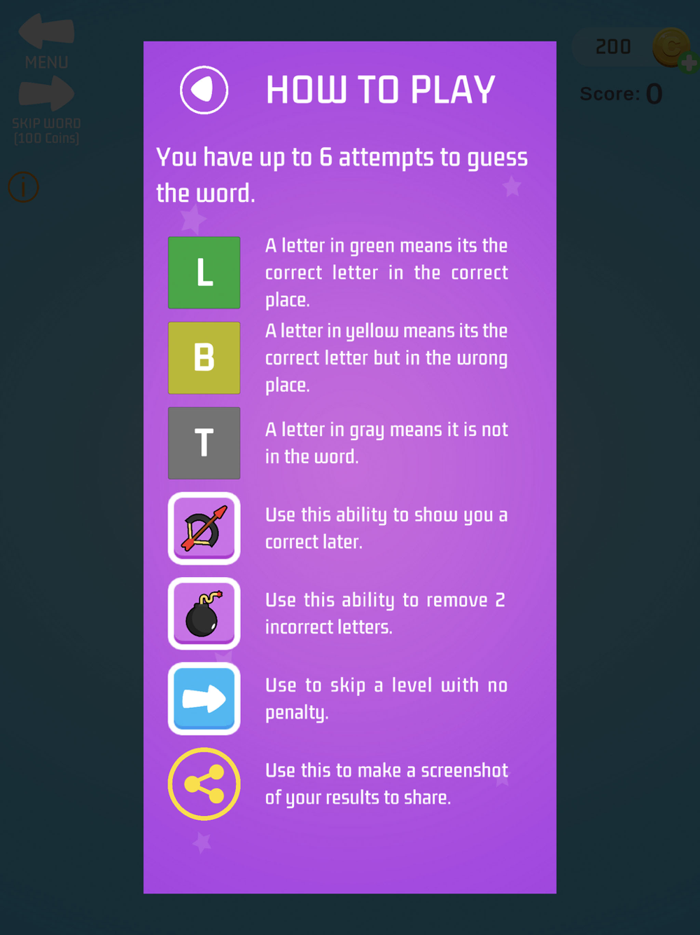 The definitive word guessing game, with fewer ads. Guess the daily 5-letter word within 6 guesses, or guess a random 5-letter word. Play past daily word puzzles, post your achievements to social media or email them to your friends. Join in on a worldwide leaderboard and see how you rank against others! Features a challenging 5-letter word library of Scrabble quality words in both US and British English, and also featuring a Spanish word list. Need a little help? Wordzle also features boosters that give you hints as to what letters are or are not in the target word.