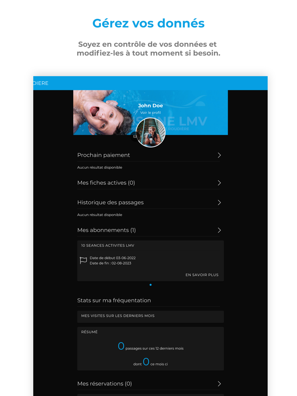 Gérez vos abonnements, réservez vos cours en 1 clic et Gérez vos abonnements, réservez vos cours en 1 clic et invitez vos proches et amies à vous joindre dans vos activités préférées. De nombreuses autres fonctionnalités sont à découvrir. De nombreuses autres fonctionnalités sont à découvrir.
