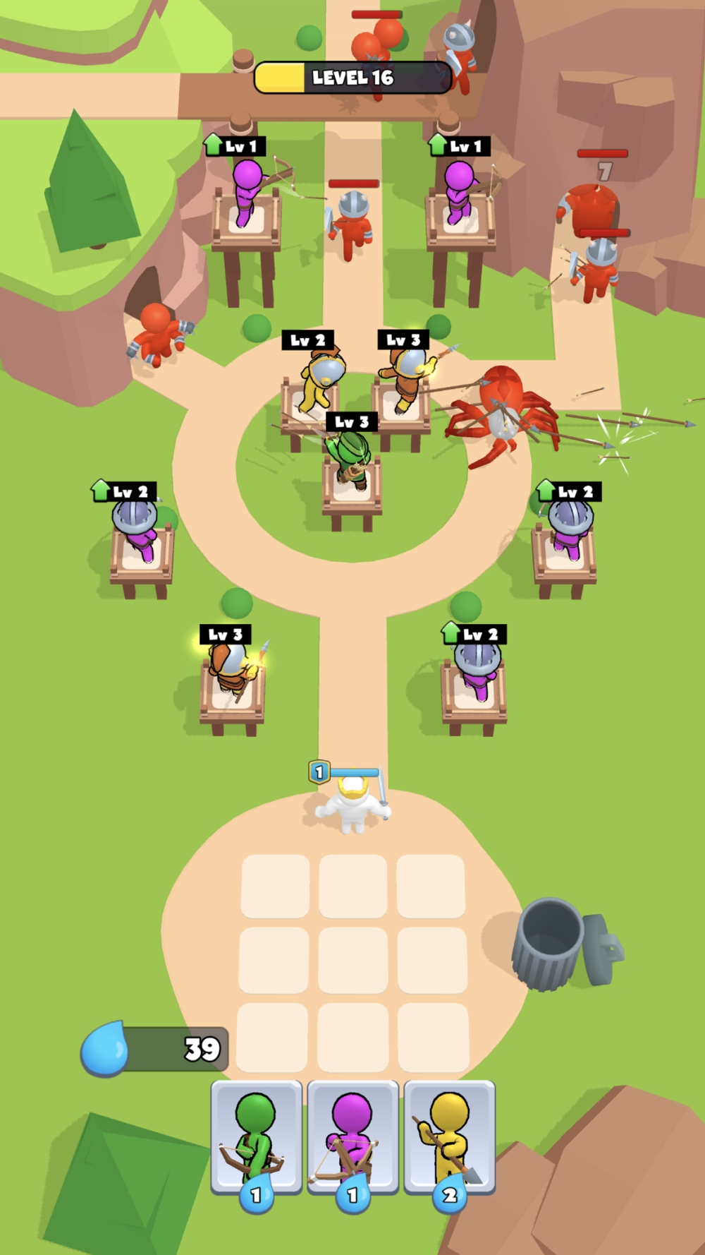 Choose the right warriors and strategy to pass levels.