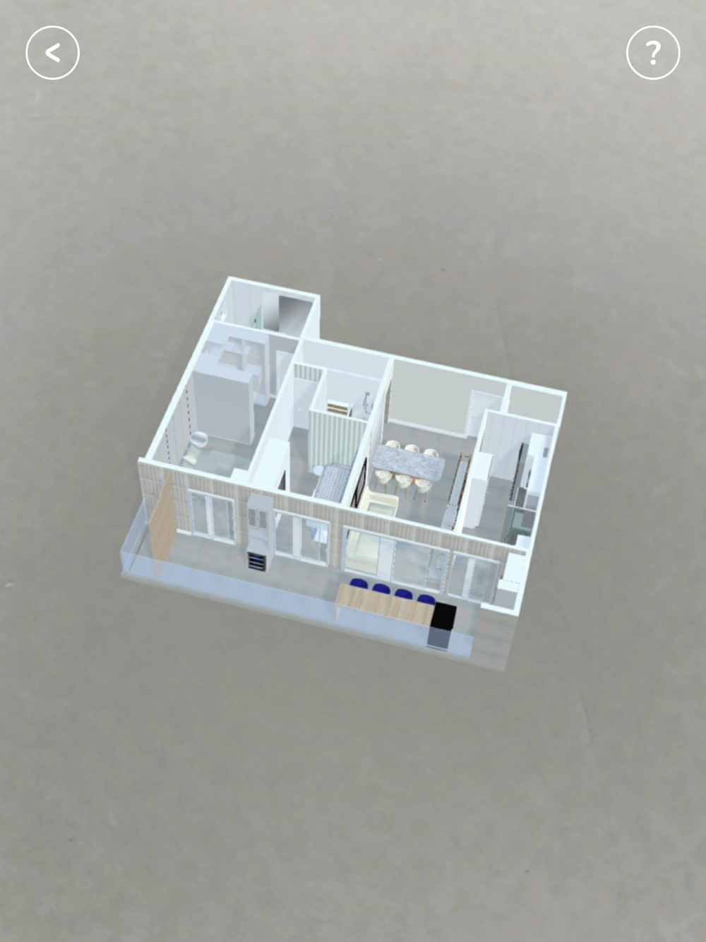 Utilizando o recurso de Realidade Aumentada você poderá conhecer tanto a fachada e áreas de lazer na parte externa como também conhecerá os 02 apartamentos decorados.