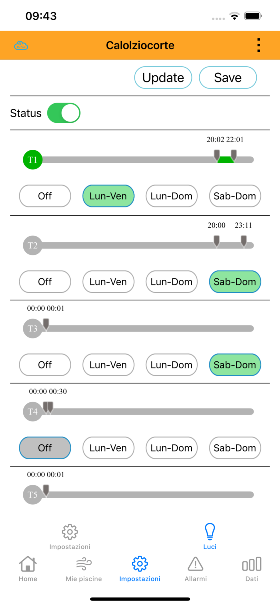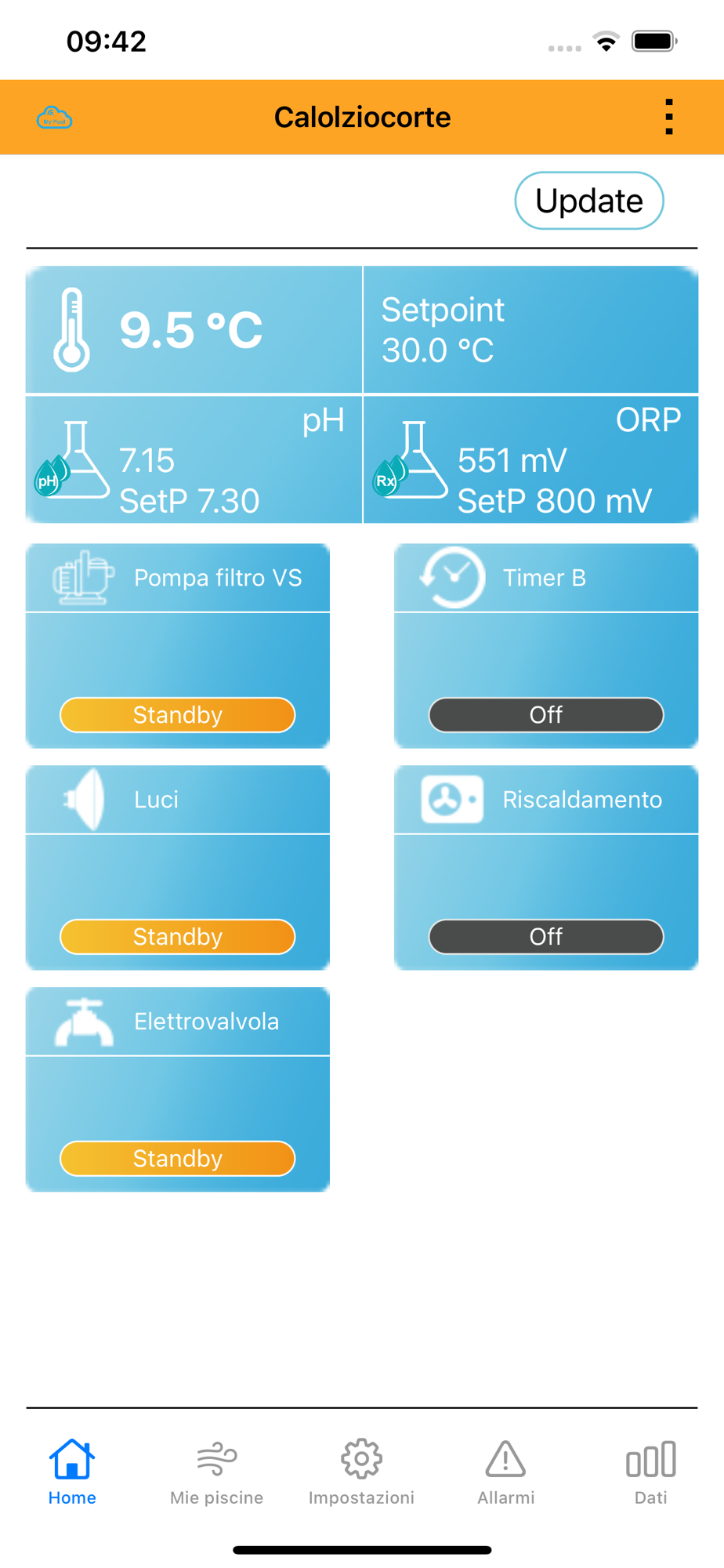 The Blulogica My Pool app is able to remotely read and write the parameters of the Blulogica Ecolink WiFi iOT devices: chlorine generators, devices for reading and regulating pH and Rx, for managing heaters, hot tubs, pumps, lamps RGB. The app user must be connected to the Internet, must login with username and password, then must select one of the devices in the list of user devices.