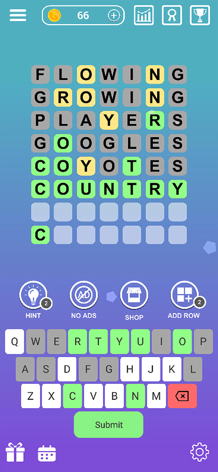 5. You can purchase hints to finish if you need help to guess the right word in the right place, or you can add a row to try your luck in guessing the word if you have exhausted your tries.