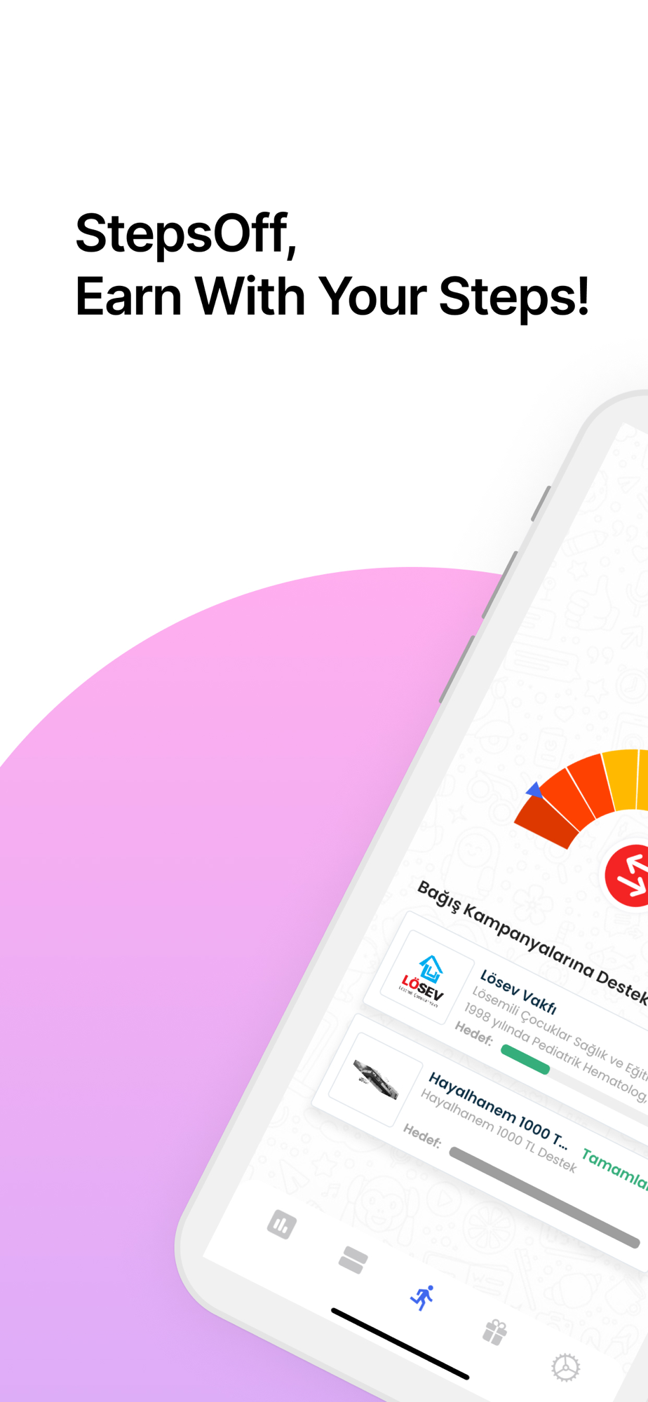 StepsOff is a mobile pedometer app where you can earn rewards or donate with your steps.