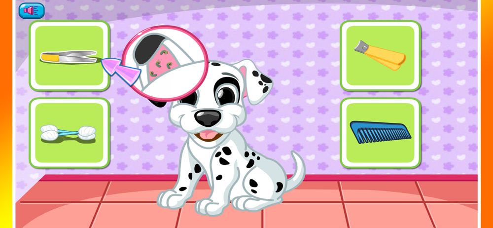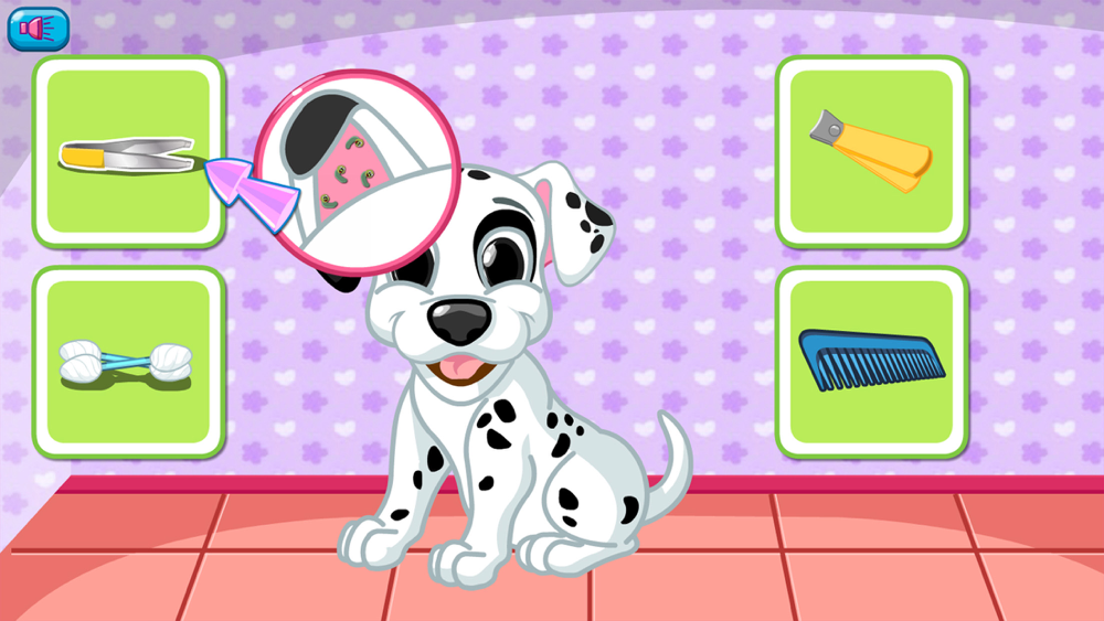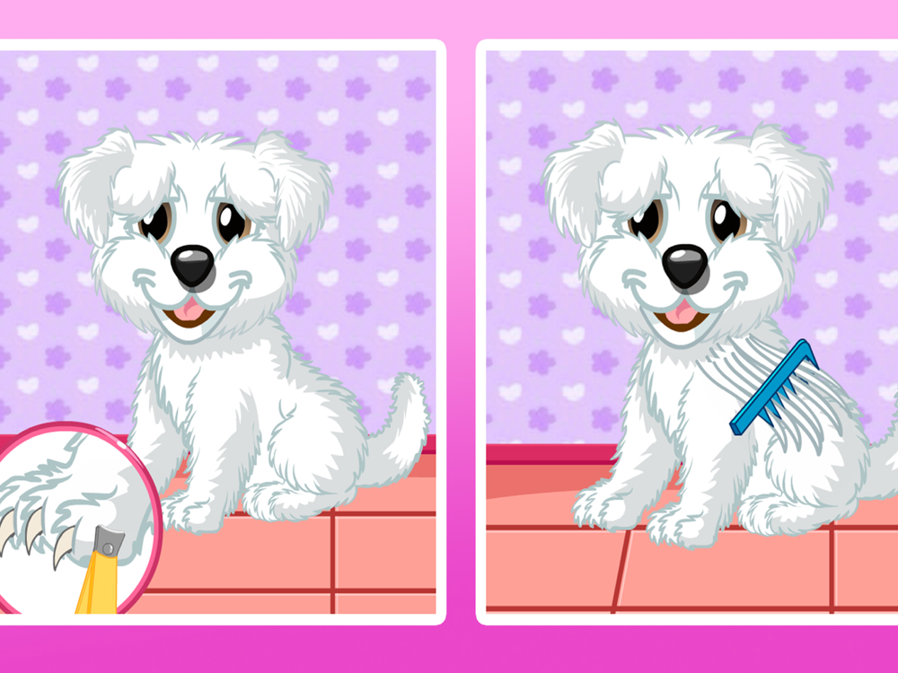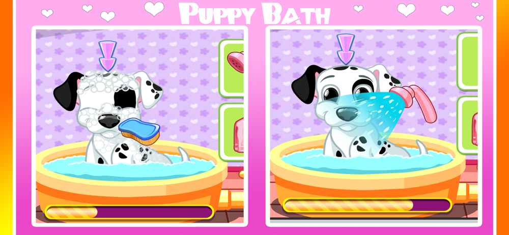 Start the game with the first puppy and follow the instruction in game to complete every step. The puppy needs a bath when you must clean his fur with shampoo and water and remove any bacteria you find on his body. Next you have the change to create a new style for the cute puppy. The wardrobe is full of colored clothes, take a look and choose what you want. A pair of pink shoes match perfect with a blue head accessories. Combine clothes as you want and and move on because it comes the lunch time when you must feed the puppy.