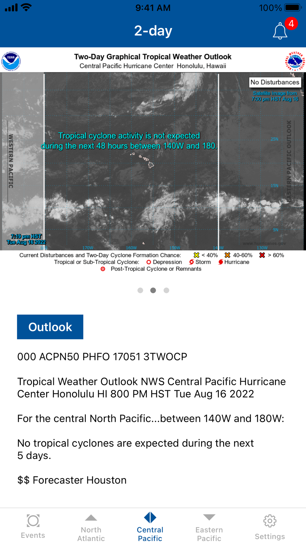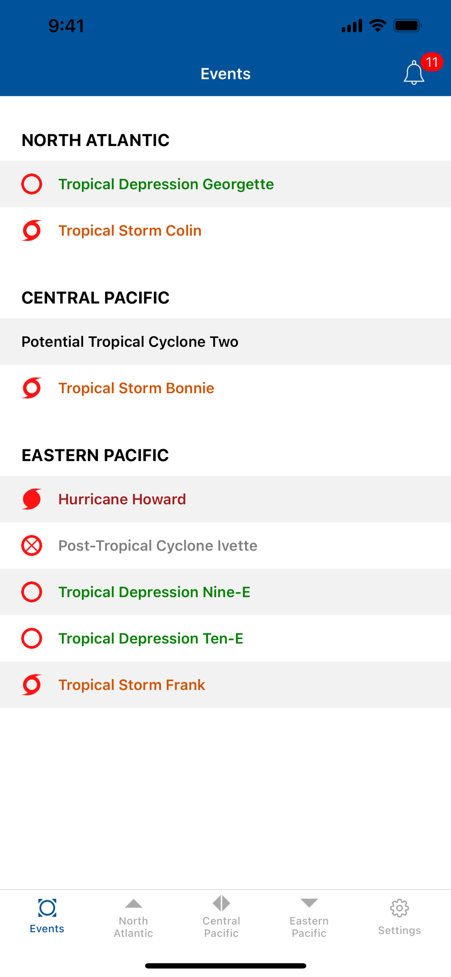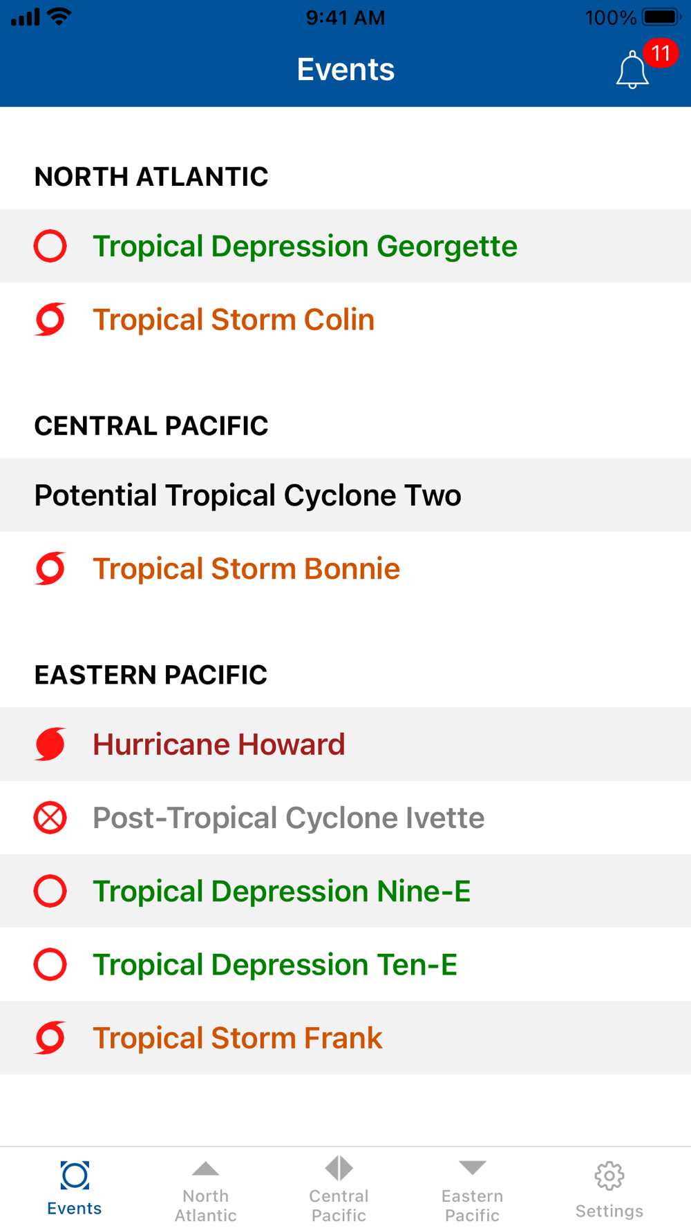 Get real-time Hurricane, Storm, Tropical Cyclone, and other weather disturbance updates directly to your iPhone and iPad.