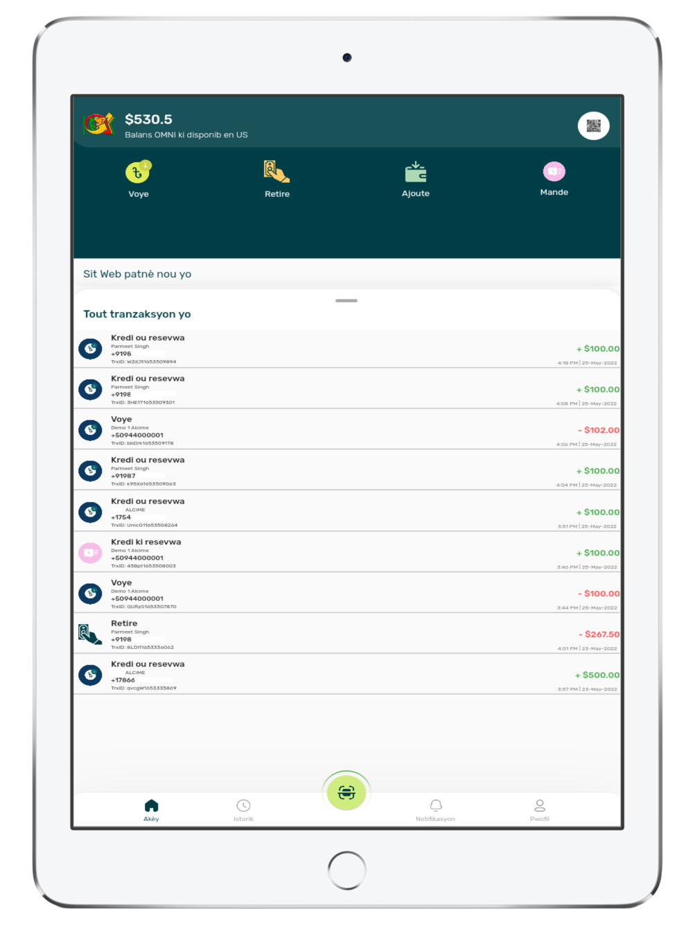 With OMNI Kredi, people can send or withdraw their credit in US dollars when they sell their OMNIs to an agent. People abroad can pay credit for their Haitian beloved ones as well. Moreover, people from Haiti can pay credit lines in the name of those living abroad. Therefore, they can pay off credit for each other. What do we need to know between credit and loan? Credit is not a loan. A loan is more of a secured transaction than a short-term credit. OK agents are third-party partners who are there to secure such transactions. OMNI NOVAS Groups, LLC is just operating the system.