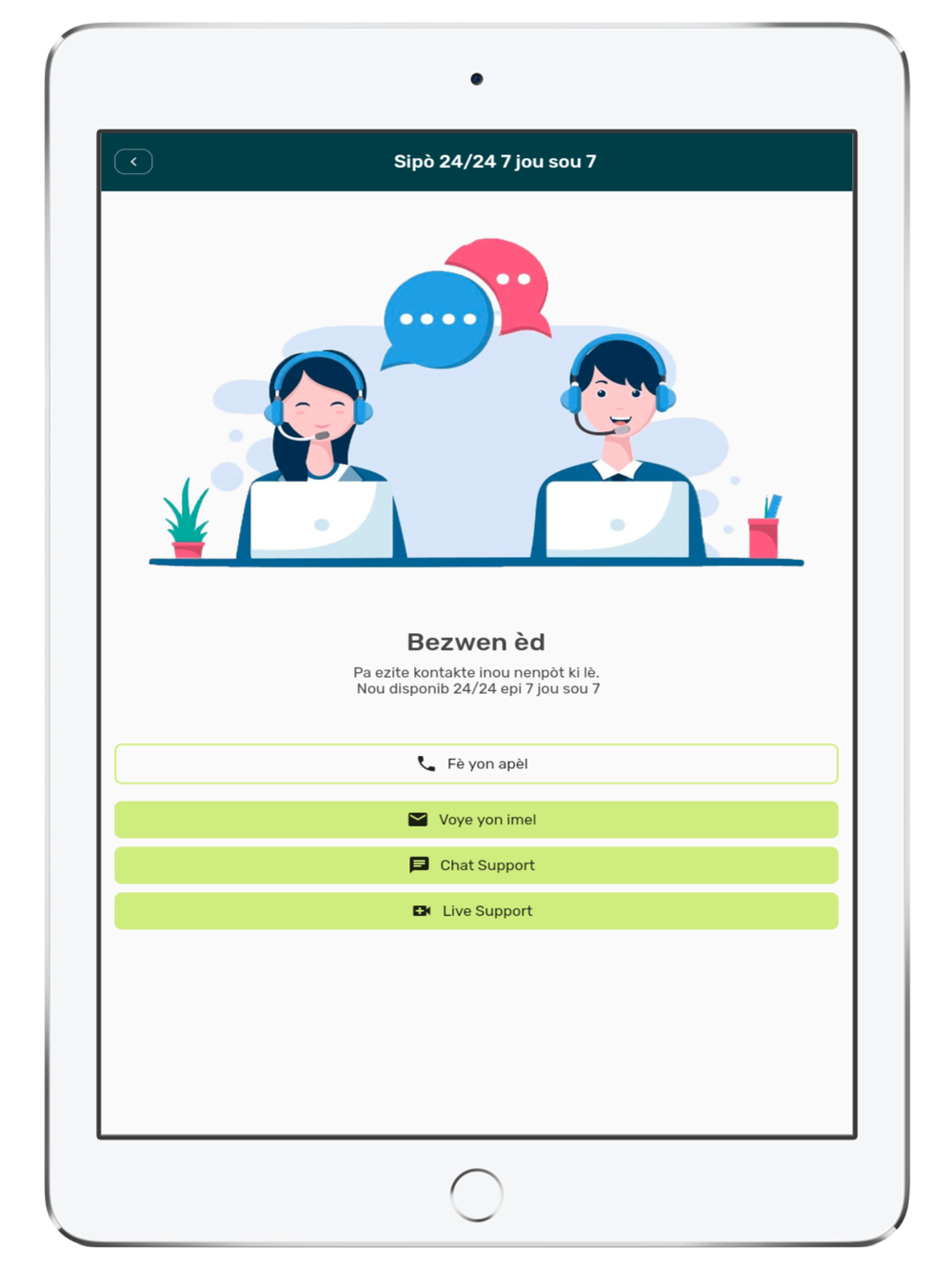 Whether they are sending or receiving the credit, they must both, sender and receiver, have the app to make the transactions. Agents must also have the app. For owners of phones that are not running on iOS, they will only provide the agents with their phone numbers so that the agents can use their own phones to help them make transactions. Users are only giving the agent # their phone number but they have to put the PIN that OMNI Kredi sent them in the SMS. In this updated version, you as a user can still send or withdraw your OMNI and sell this virtual property in US dollars to an agent. Now, from the login page, you can find support on WhatsApp. Other support like live video calls, sending emails, live chat, calling our office in Miami, etc. are in the app. It is also translated into Ayisyen (Haitian Creole), French, and Spanish. You can now receive OTP by SMS and also SMS notifications for any type of transaction. You can share the app too.