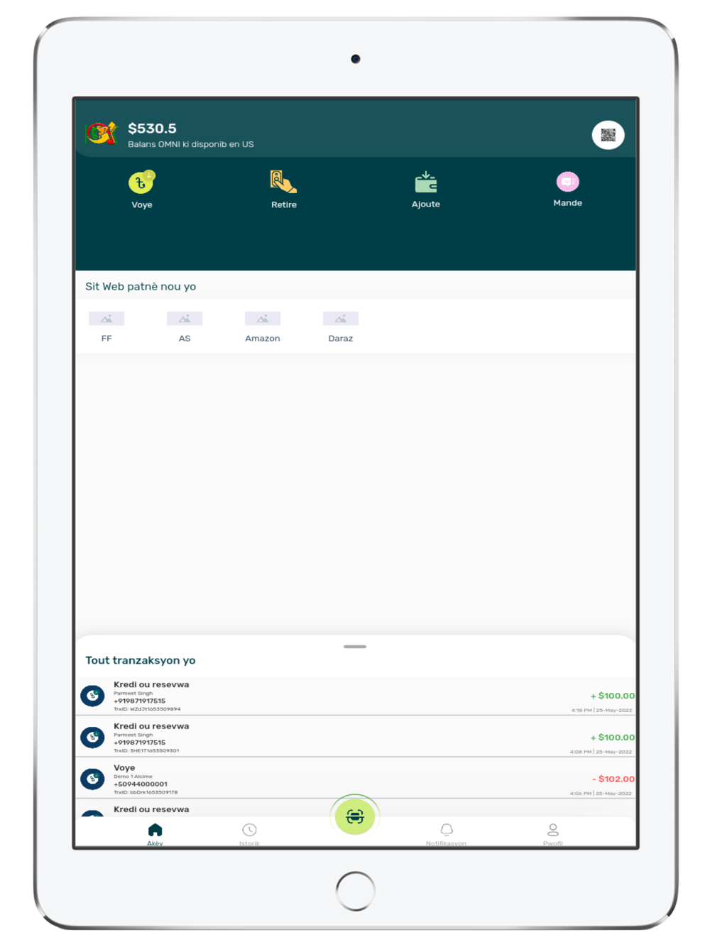 Welcome to OK. OMNI Kredi is an app allowing users to set up their accounts with the ability to send and receive credit with OMNI a virtual property created by OMNI NOVAS Groups LLC. OMNI Kredi is working as an online service that allows people, whether they are living abroad or not, to send OMNI as a credit to their family and friends in Haiti. Likewise, Haitians living in Haiti can send OMNI as a credit to their families and friends abroad as well. Online shoppers can also use the OMNI Kredi service to have their own debit card or credit card for online shopping in any country. Debit and credit card services are not yet available but will come soon. They can reload their accounts with OMNI. The recipient can receive the credits in OMNI. 1 OMNI equals $ 1 US. Therefore, the amount of OMNI the people have on their account is also the number of dollars they literally have. They can, perhaps, withdraw their OMNIs in dollars. However, OMNI is not a cryptocurrency. OMNI is a virtual property that people can exchange with others for all transactions that in real life are not prohibited by the law.