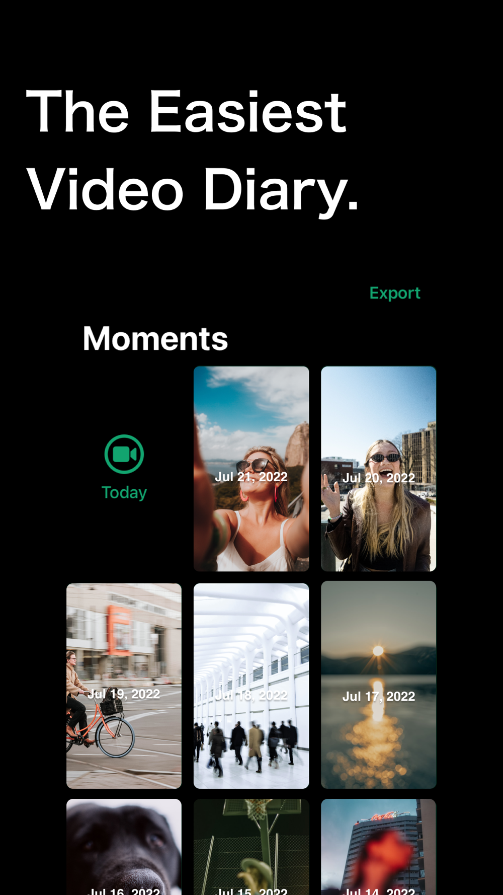 Capture some seconds every day and make a video for your life.