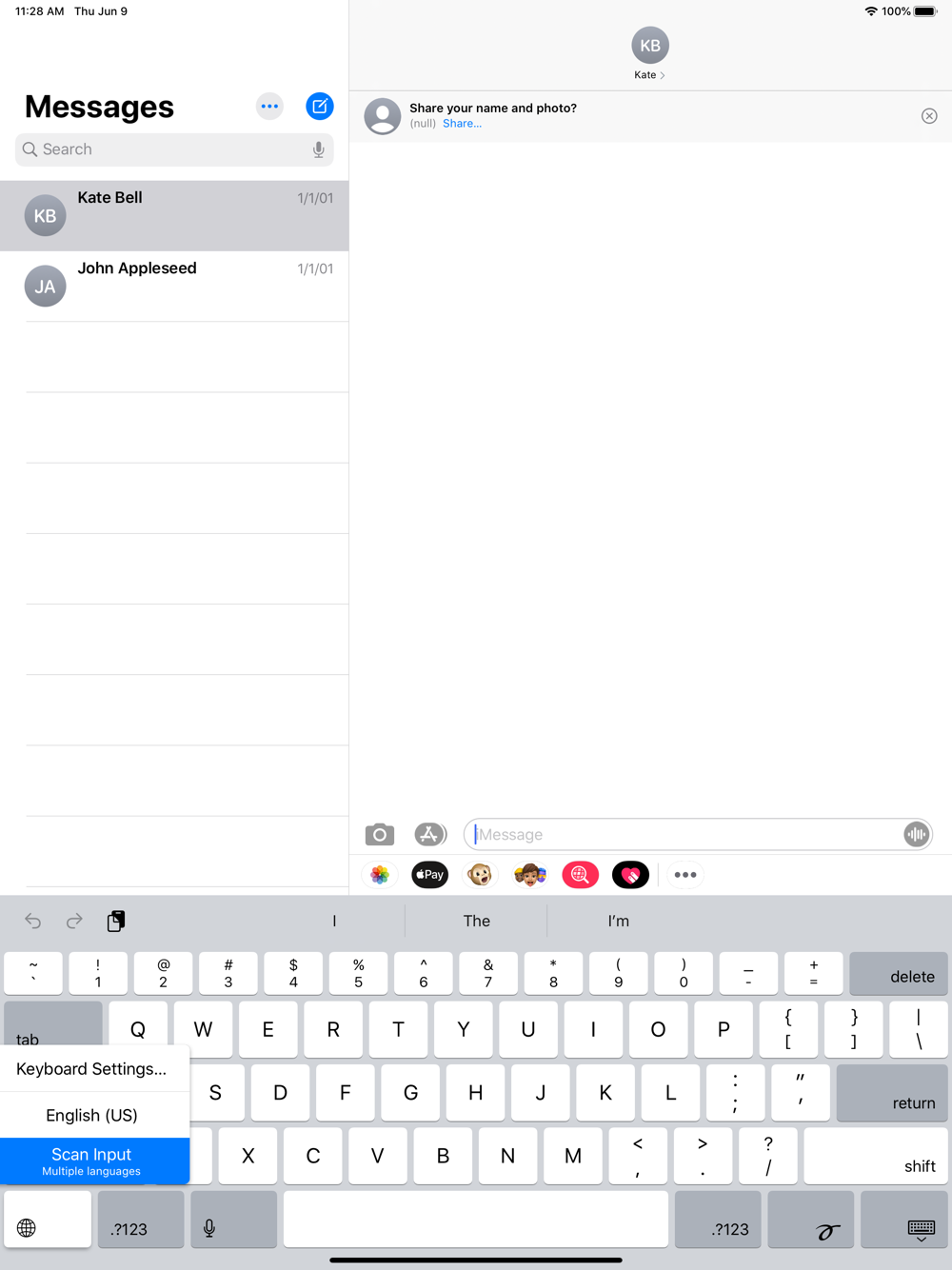 3. Open one of your favorite App, Long press the 'Globe' Keyboard button and select 'Barcode Input'