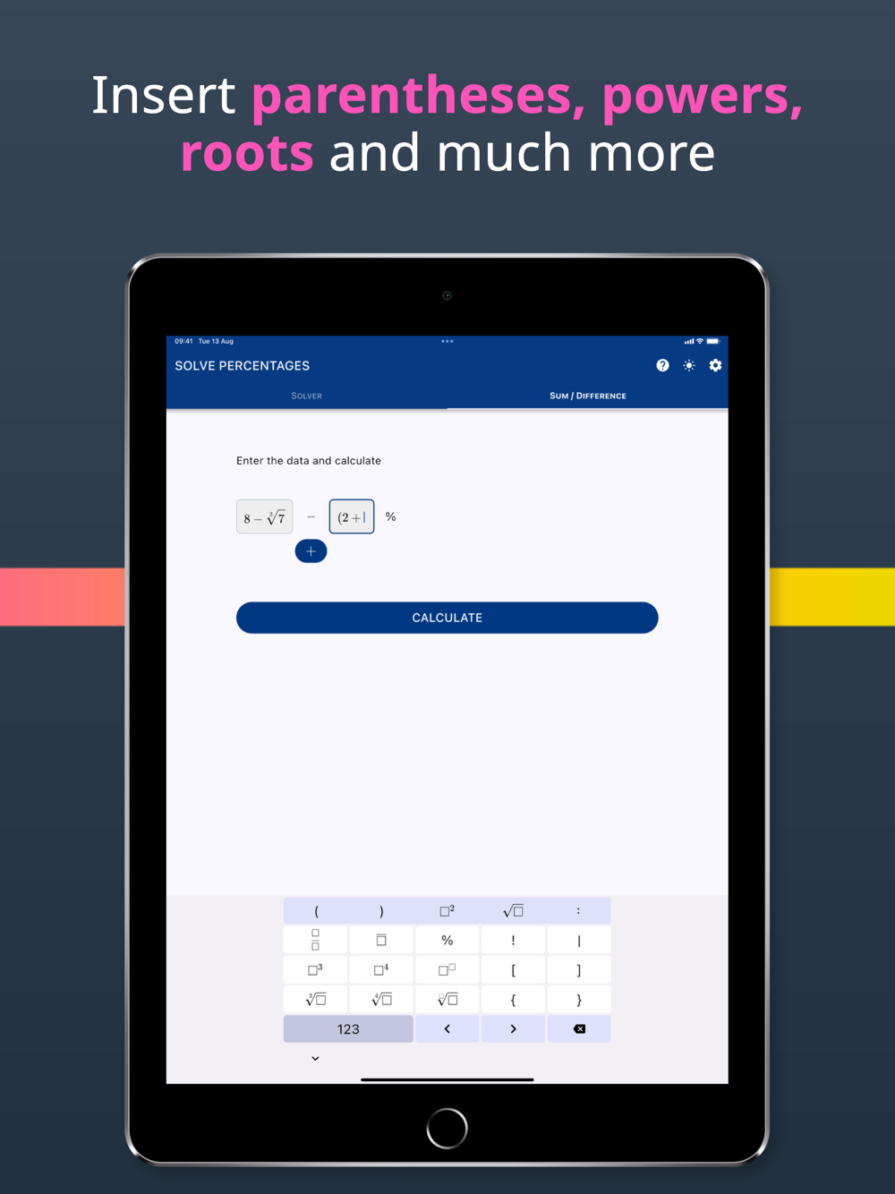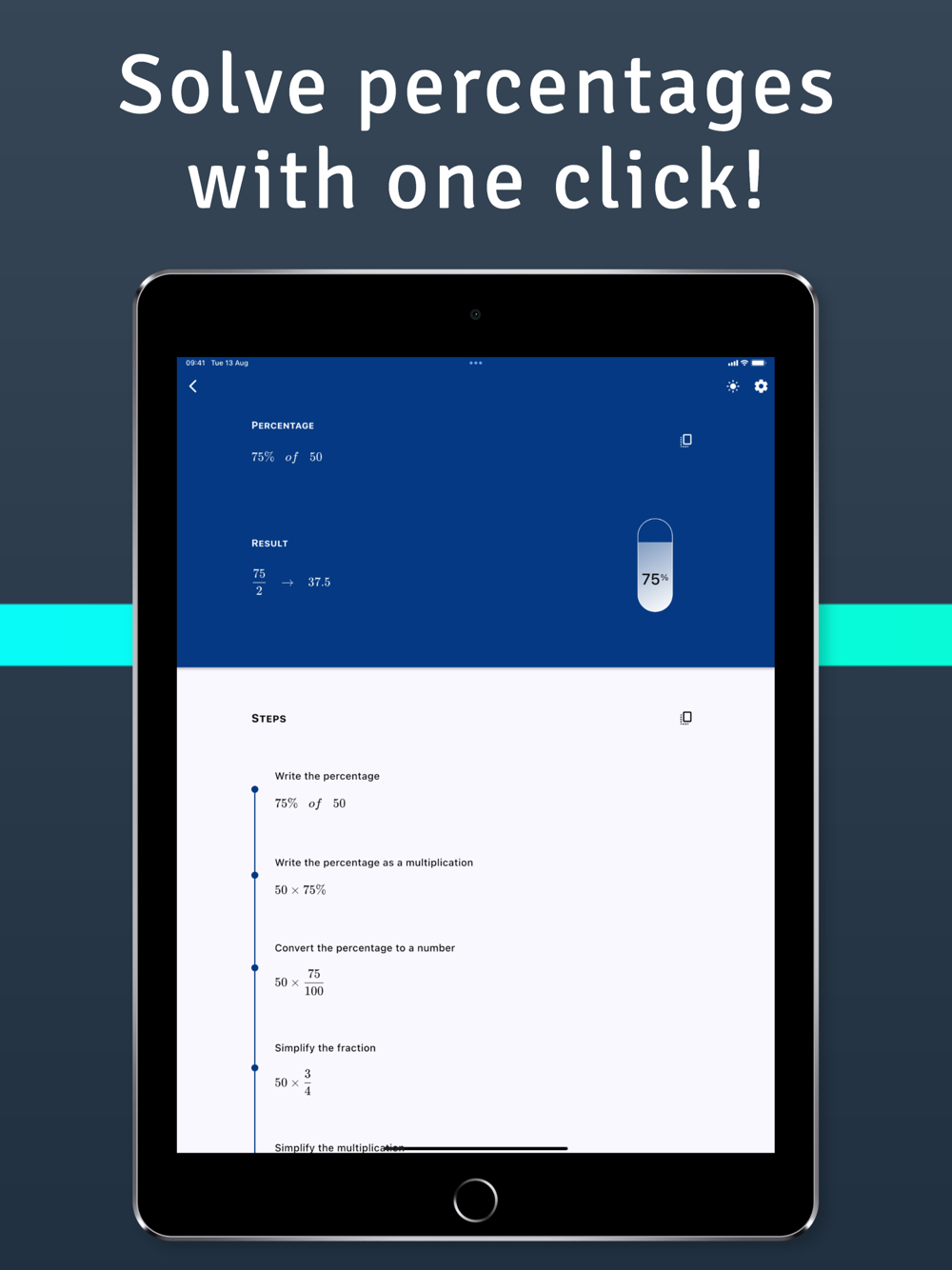 Simplify your math calculations with "Solve percentages" and solve any percentage quickly and accurately!