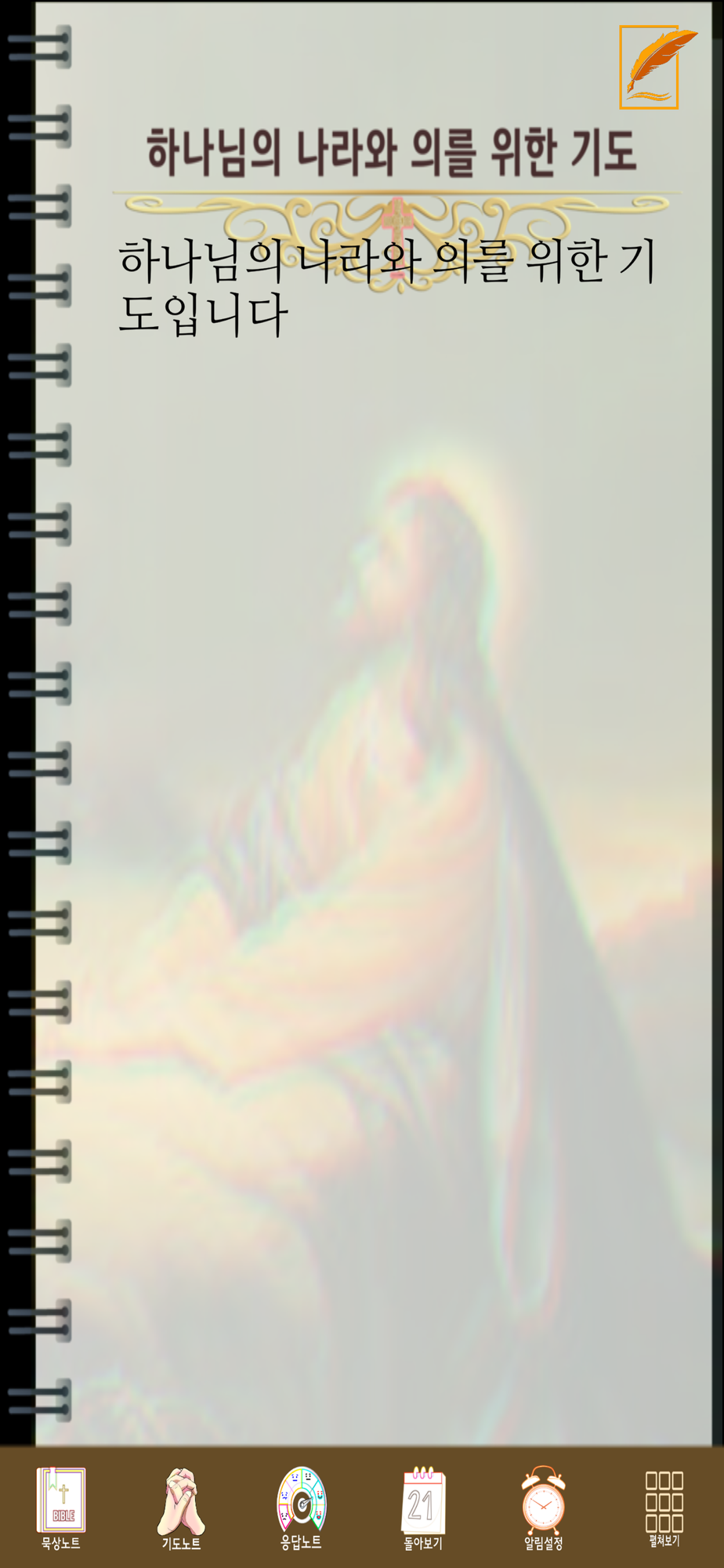 1. 첫 화면에는 기도노트를 여는 년월일이 표시됩니다.