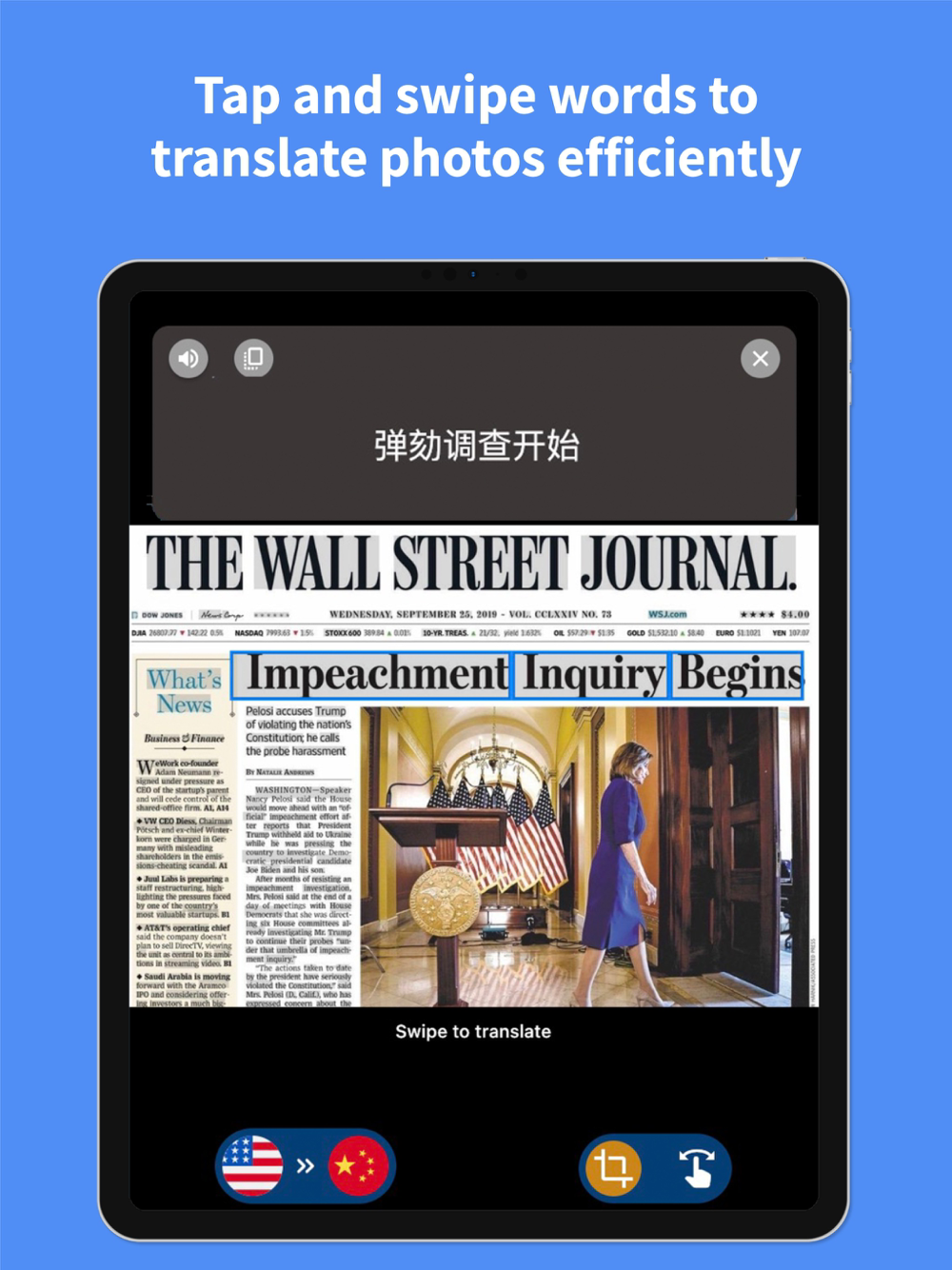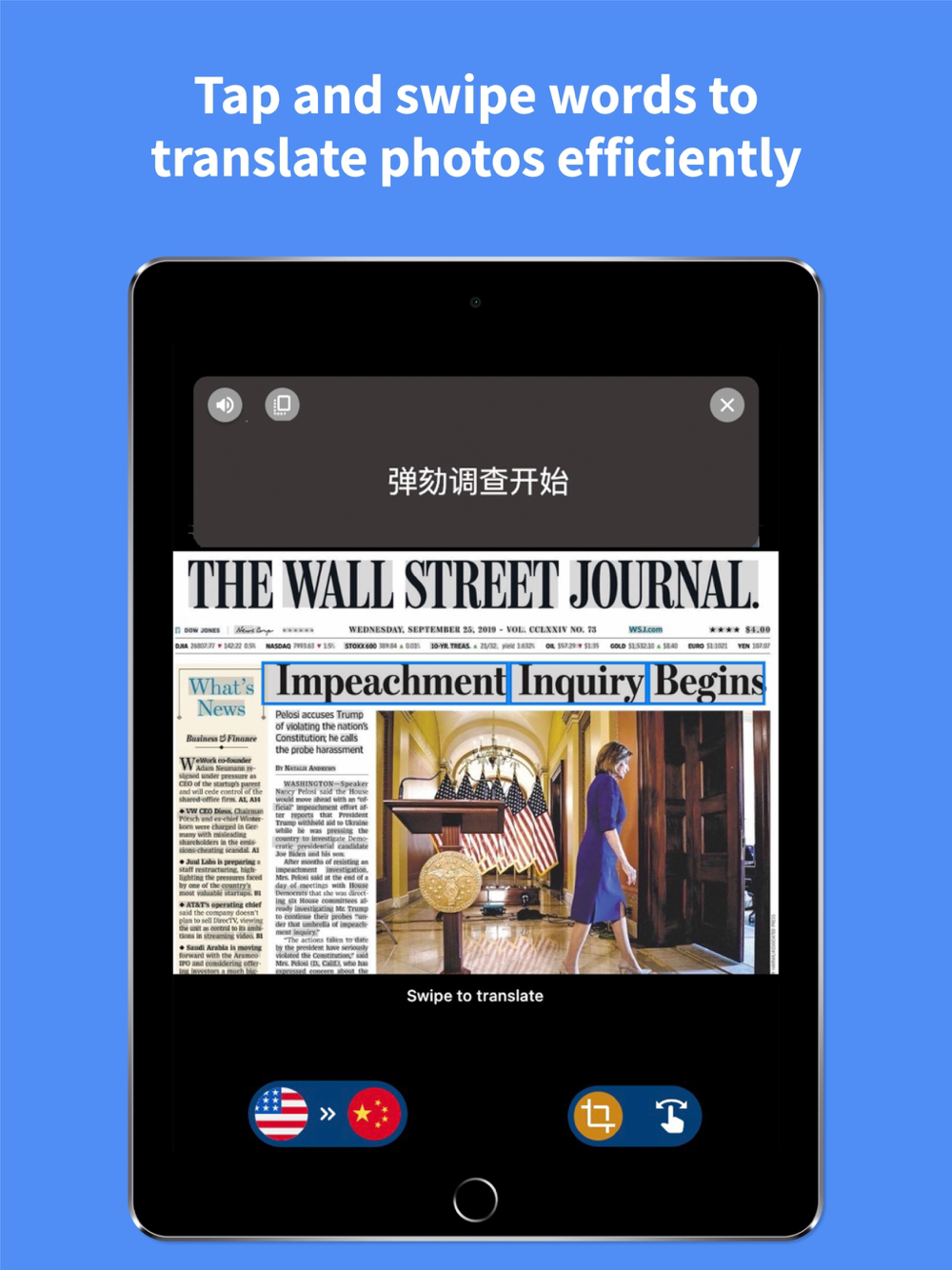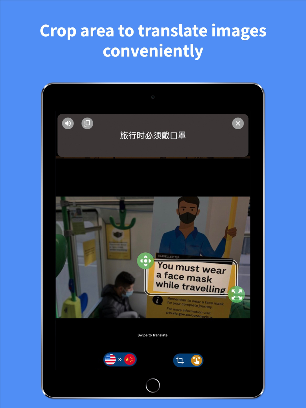 Automatically recognize and translate text in images by taking a photo and pressing a button, can touch a word to know its meaning or see all translated