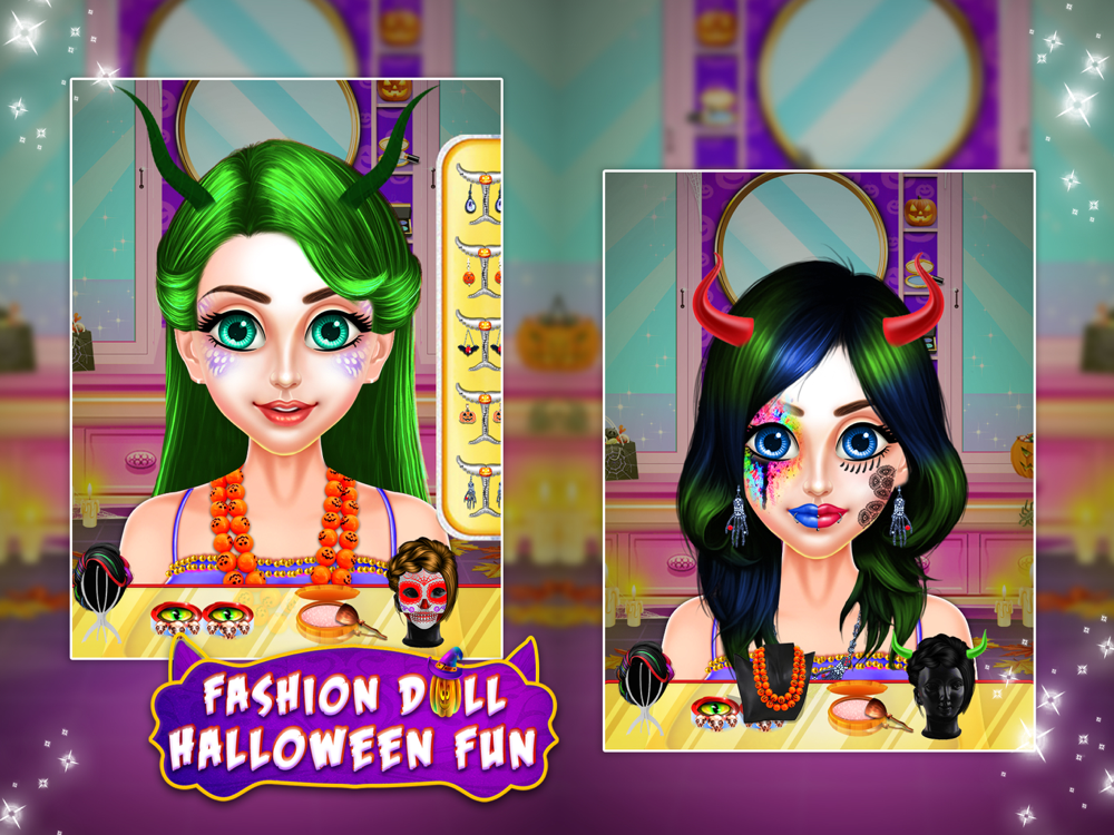Create your dream Halloween look: make a stunning witch costume or mix and match spooky outfits and finish with a scary vampire makeup and dress-up! Halloween Makeover the Spa & Salon Game. It's gorgeous! It's Scary! My girls, welcome to Make-Up Me: Halloween to start an amazing journey.