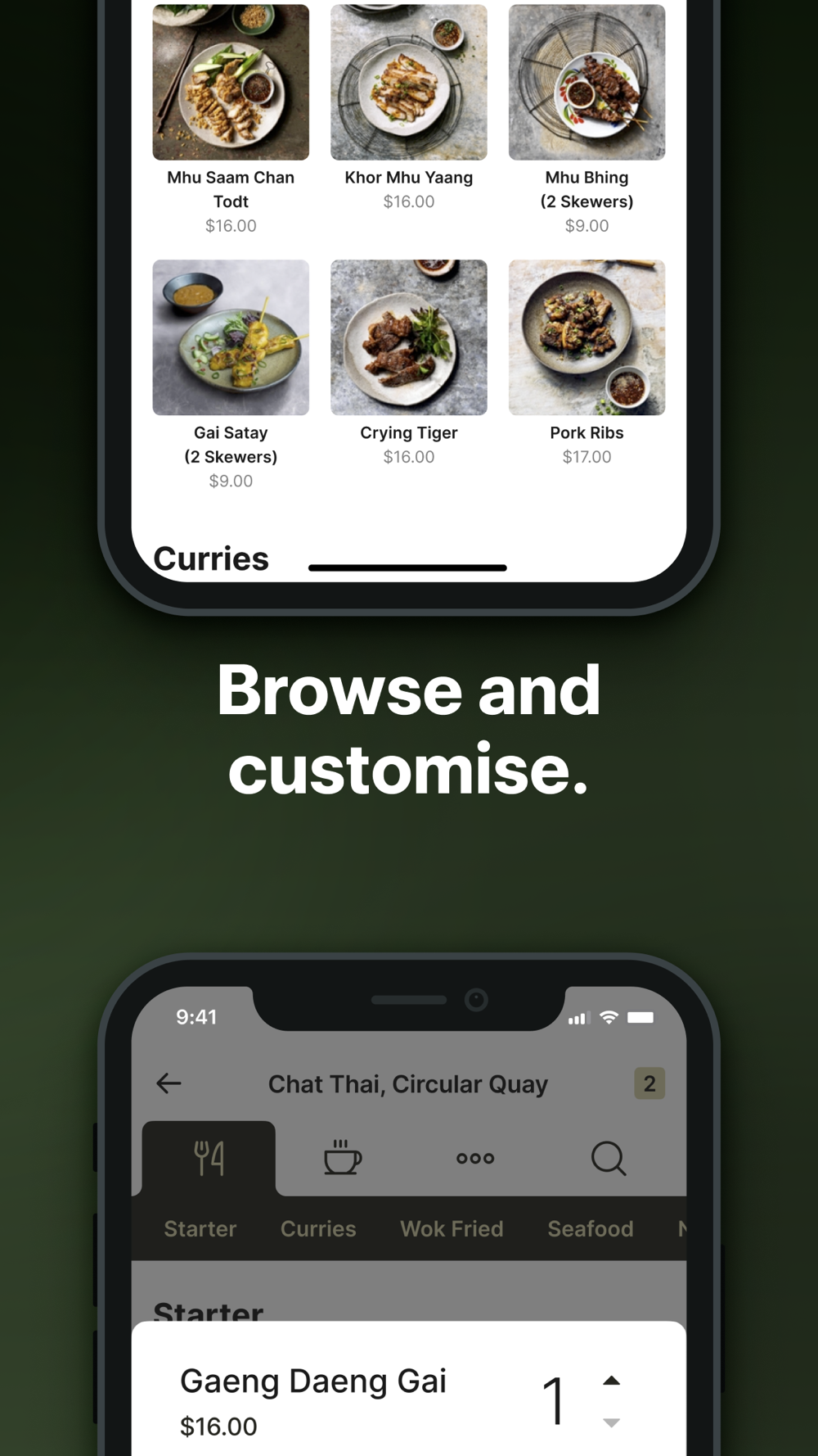 Explore the menu. Personalise your favourite items or discover new ones to try.