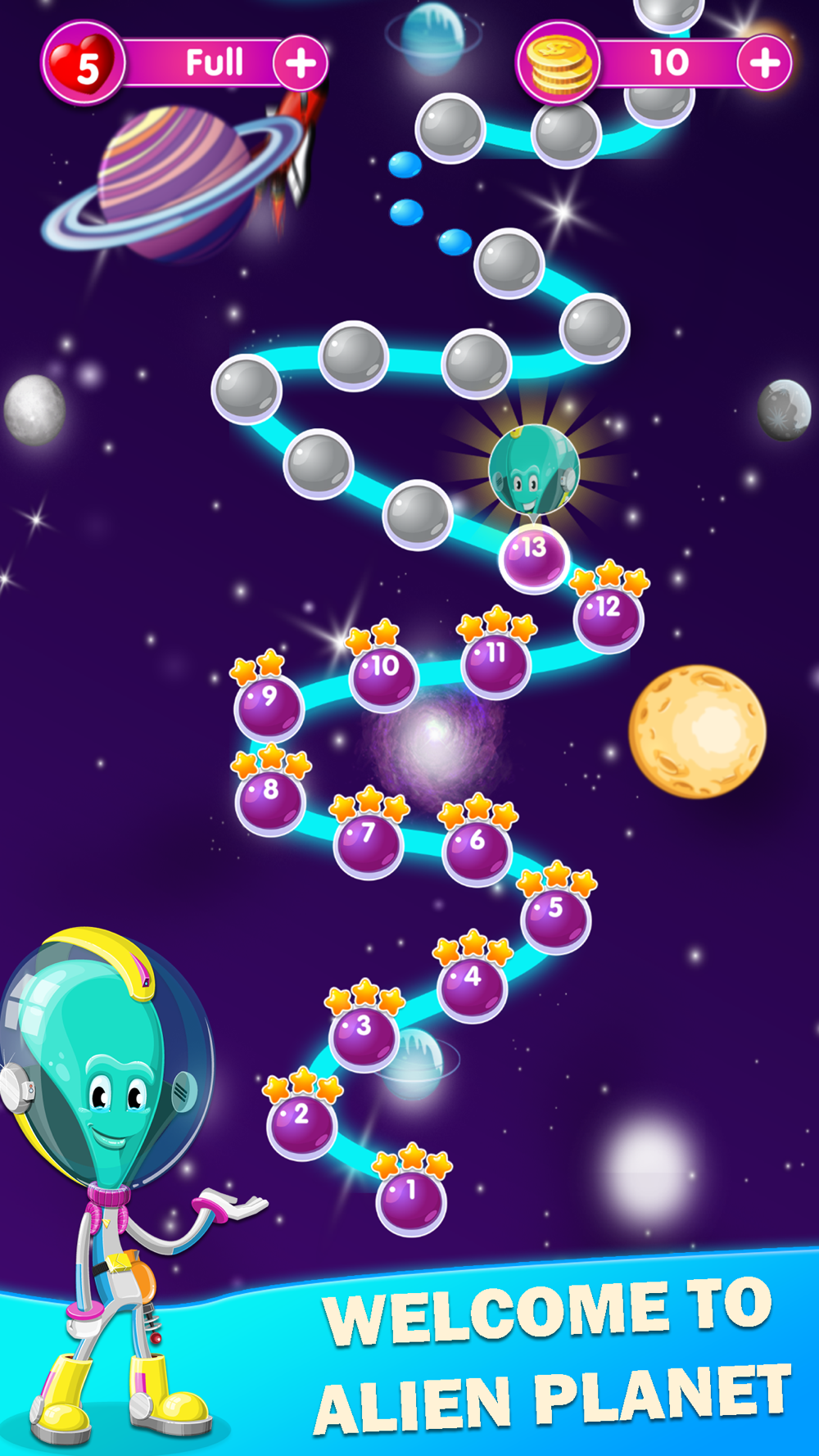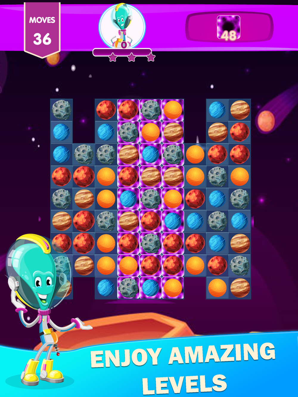 Are you ready to join new Alien Planet Match 3 Puzzle Game? Try this matching planets game in 2022. Try to pass as many levels as you can.