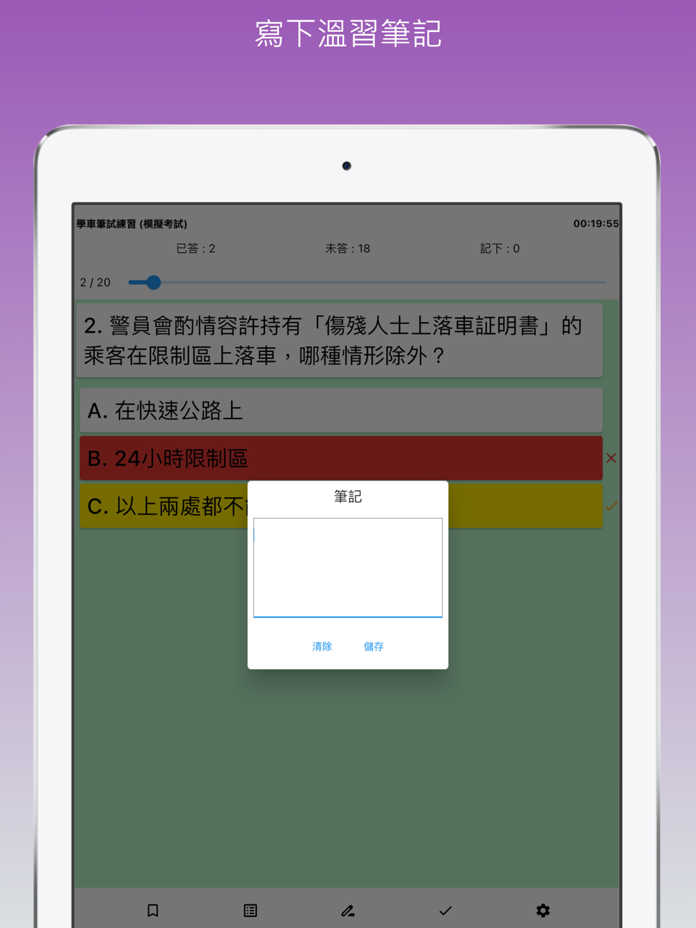 標記問題,寫下筆記,模擬考試,溫習好幫手。