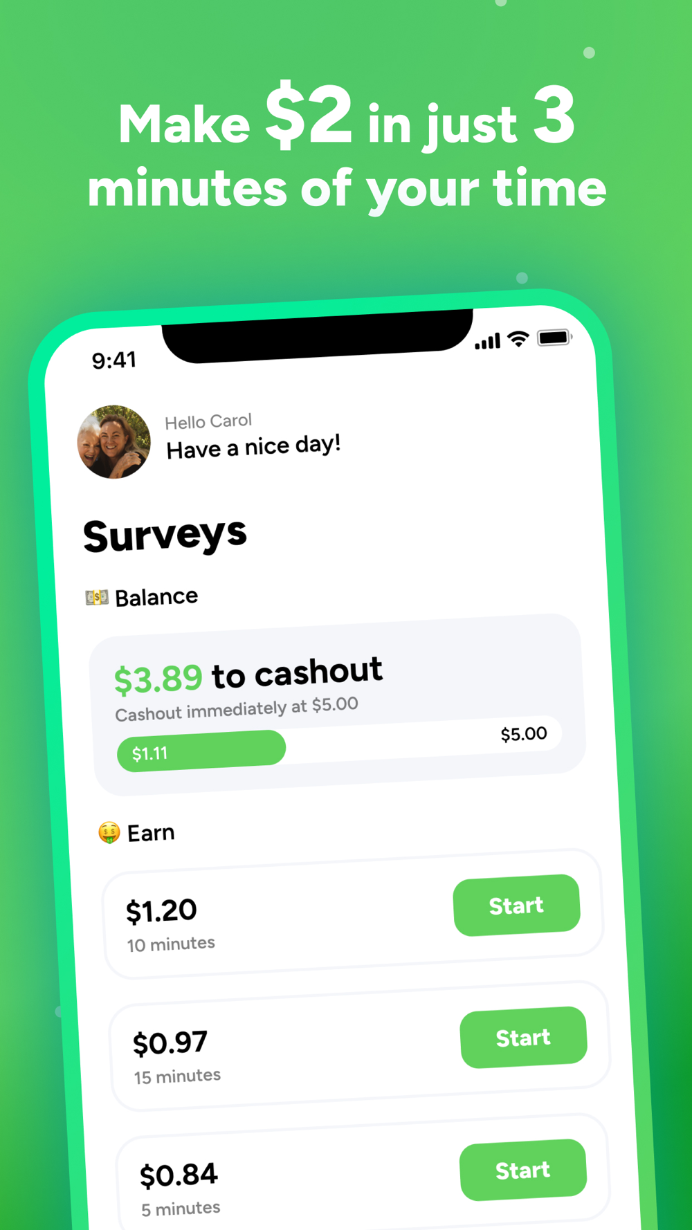 Join our community of happy members and start earning today! With millions of satisfied users and positive reviews, Kaching is one of the most popular money apps available. When you sign up for free, you'll earn $1 just for completing your first survey. After that, every survey you complete pays you cash instantly via PayPal, Venmo, or CashApp.