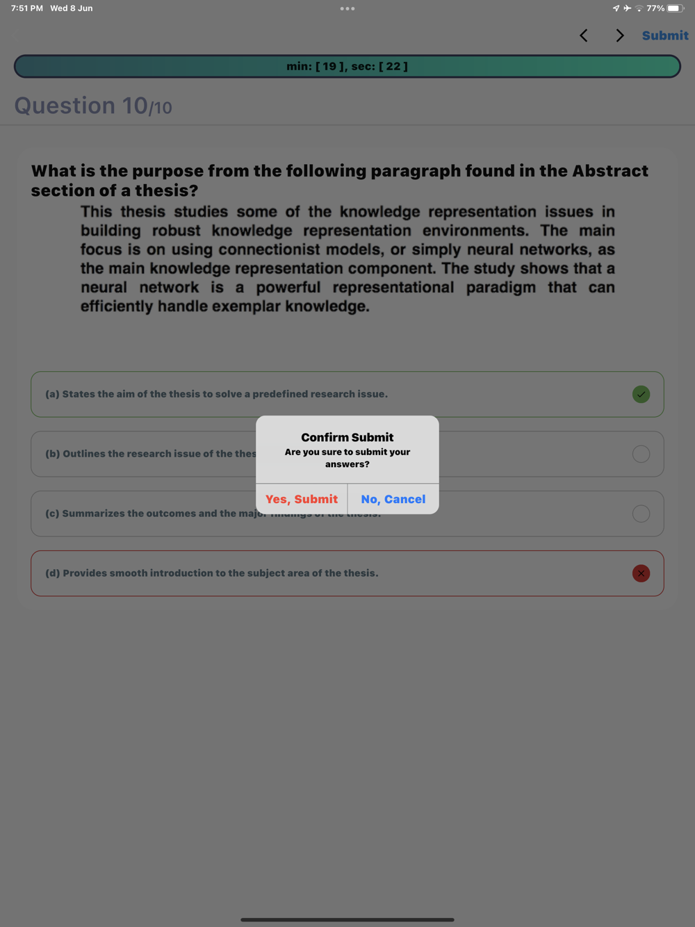 The aim of this app is to serve both Teachers and Students manage and take MCQ online exams. On one hand, Teachers can create Public / Private courses (within a predefined or newly created category), create ( or import ) MCQs bank for the course, and organize online exams for Students. On the other hand, Students (termed Users in this app) can freely browse all the Public courses in addition to the subscribed Private courses, explore random samples from the courses MC, and take real exams organized by the owner ( Teacher ) of the course.