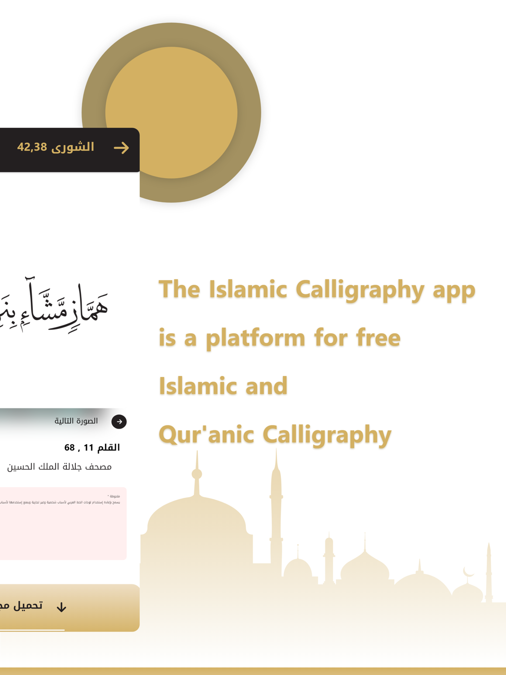 Islamic Calligraphy is a non-profit app owned by the Prince Ghazi Trust for Qur’anic Thought, an Islamic charity (waqf) set up by H.R.H. Prince Ghazi bin Muhammad bin Talal in 1433 AH / 2012 CE.