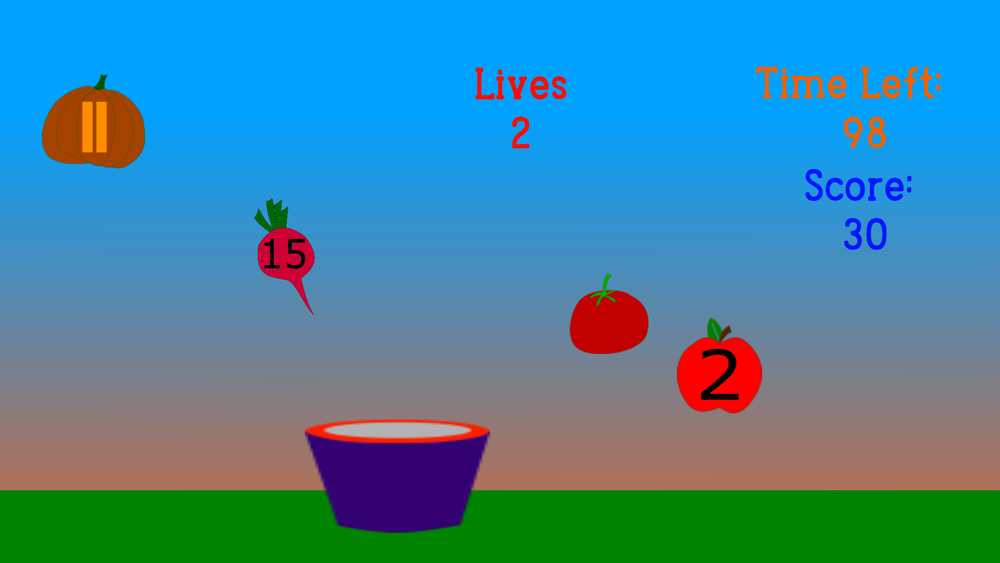 Garden Harvest is an arcade game where your goal is to catch as many fruits and vegetables as you can before time runs out. Collect delicious apples, carrots, tomatoes, and much more using the purple bucket.