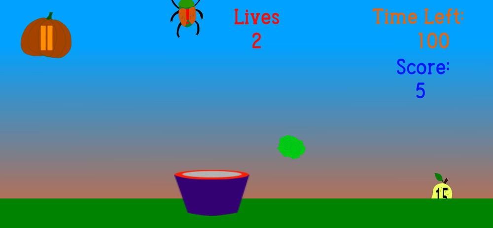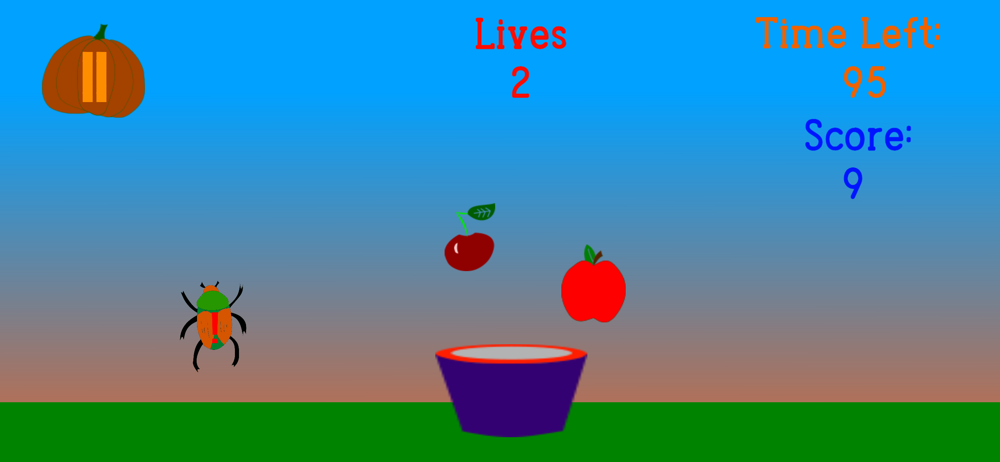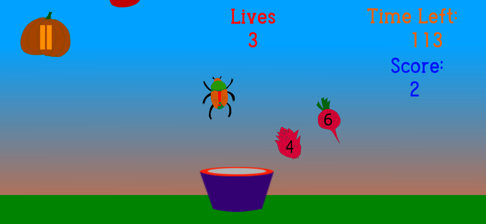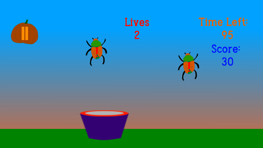 Avoid catching the beetle if possible. If you catch the beetle, you lose a life. If you run out of lives, you lose the game. Even worse, the beetles ate the entire harvest, so your score reverts to 0.