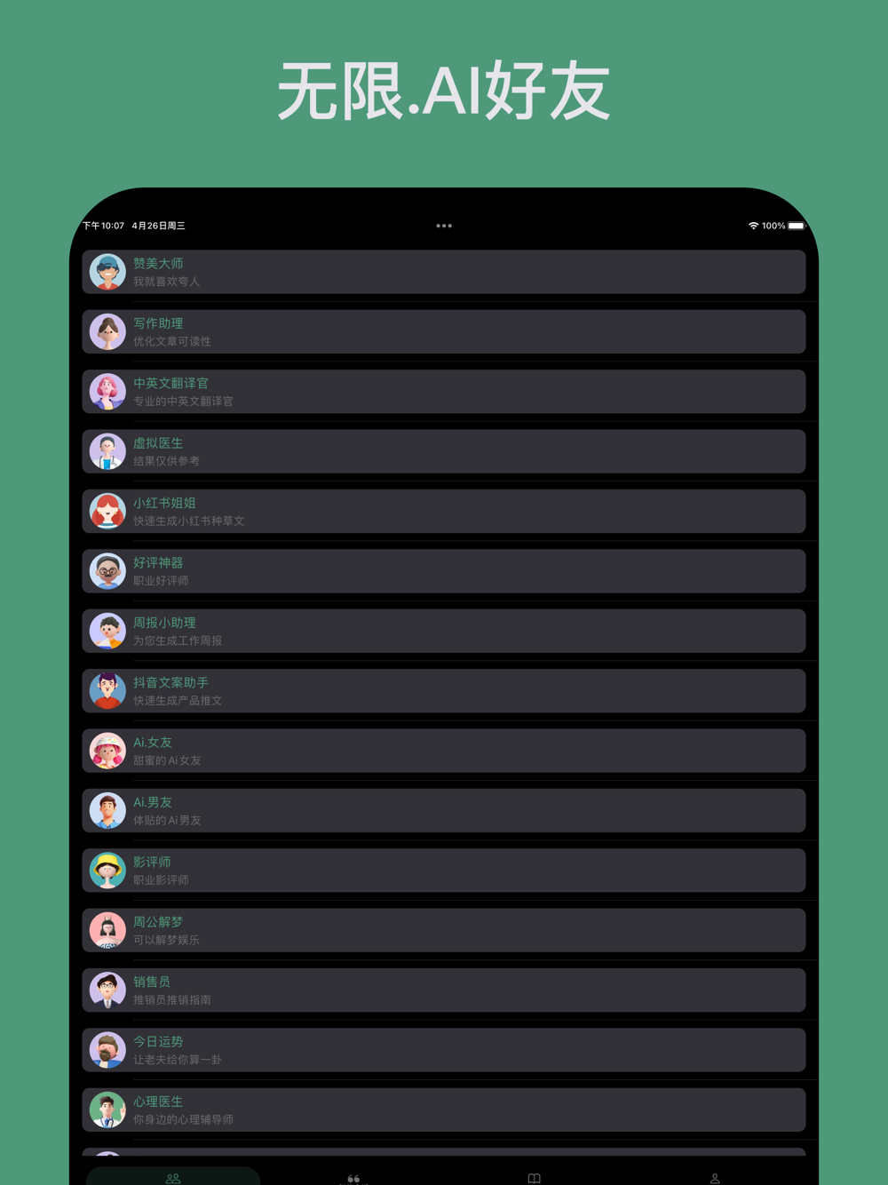 *** Added AI friends, each friend has a specific function, and the function of custom friend role will be launched later